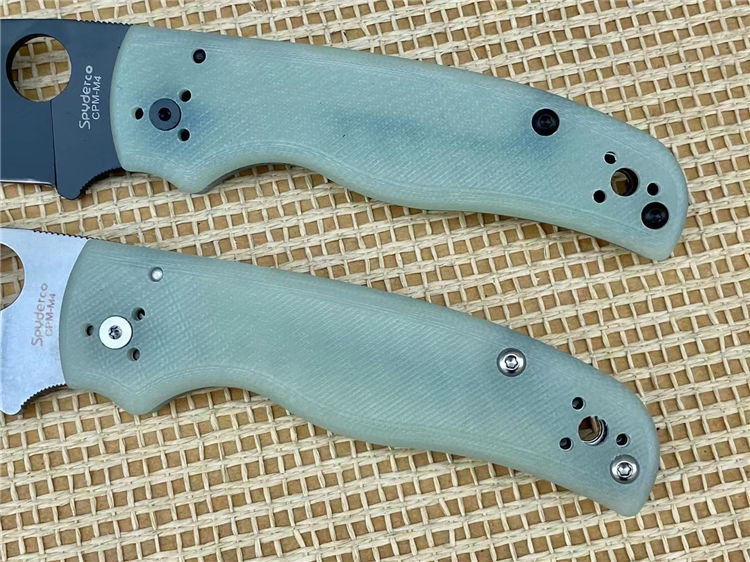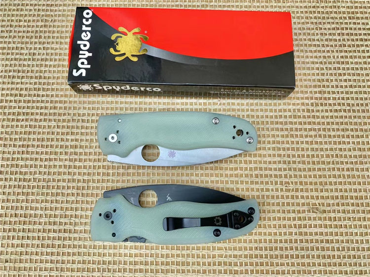 蜘蛛透明G10柄C229折刀 全长:20.3CM 刃长:8.8CM 柄长:11.5CM 刃厚:3.6mm 刃材:S30v 净重:146g 硬度:58HRC 表面:石洗 柄材:透明G10柄