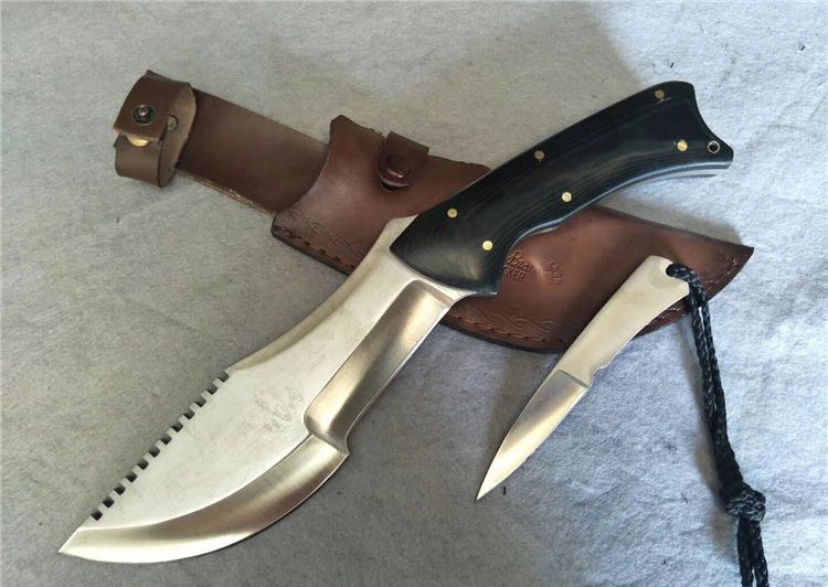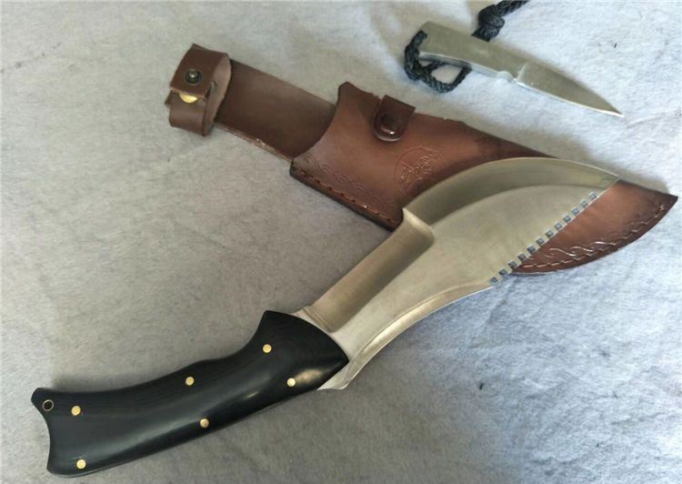 仿TOPS追踪者II号直刀钢本色 全长:34.5cm 刃长:19.5cm (分两节刀刃:圆为砍刃和平为削刃) 柄长:16cm 厚 度:6MM 刀刃最宽处:6.5CM 硬度: 57 刃材:440 米卡塔手柄 真皮鞘 刀净重:700克 鞘 重:100克 表面:丝光