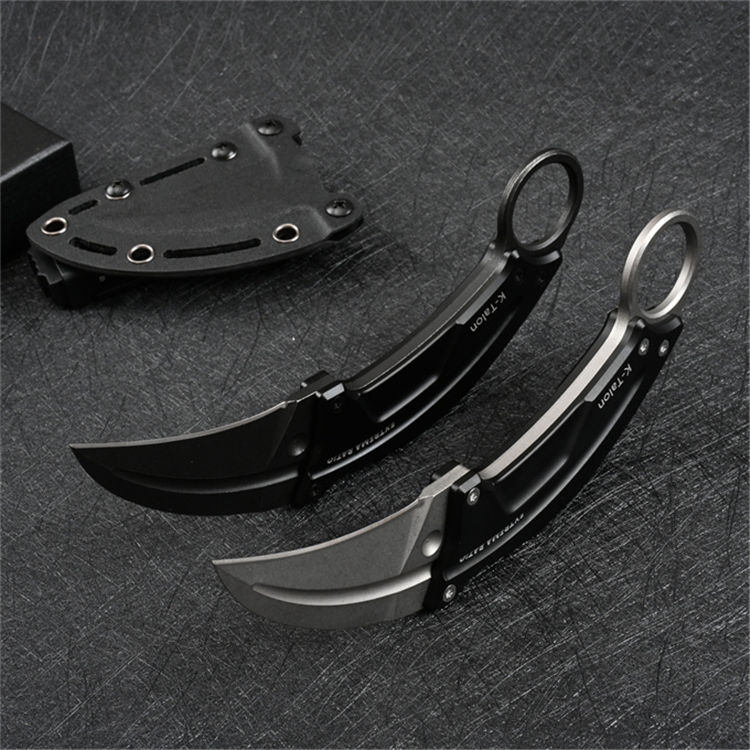 极端武力K-Talon爪刀 全长:174mm 刃材:进口D2钢,深冷热处理 硬度:58-60HRC 刃厚:3.8mm 刃长:67mm 割长:59mm 刃最宽处:34mm 表面处理:钢本石洗/沧桑黑色石洗 柄材处理:航空铝手柄,表面黑色 柄厚:11mm 柄长:110mm 柄宽:30mm配战术K鞘 重量:131g(净重)/164g(带K鞘) 原装礼品盒包装