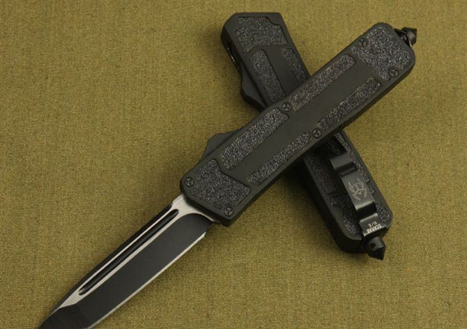 微技术圣甲虫单锋平头直跳(黑色) 开启长度:22CM 合起长度:13.5CM 刃 厚:0.4CM 硬 度:57 HRC 刃 材:440c 表 面:氧化黑 把 手:航空铝合金+钢砂 净 重:200克(整刀) 毛 重:280克(含包装物) 开 合:双动作, 直推开关,自动弹出和收回(刀头比较牢固,只有很轻微的摇动) 包 装:耐磨专用战术尼龙套。 口袋刀夹:弹簧刀夹 玻璃敲击器:钨质玻璃敲击器