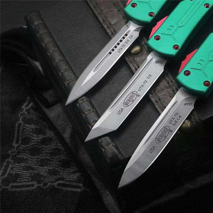 微技术迷你UTX70赏金猎人直出跳刀 全长:148mm 刃长:61mm 刃长:56mm 闭长:87mm 刃厚:2mm 刃材:D2 柄材:航空铝 硬度:56-58HRC 净重:34g