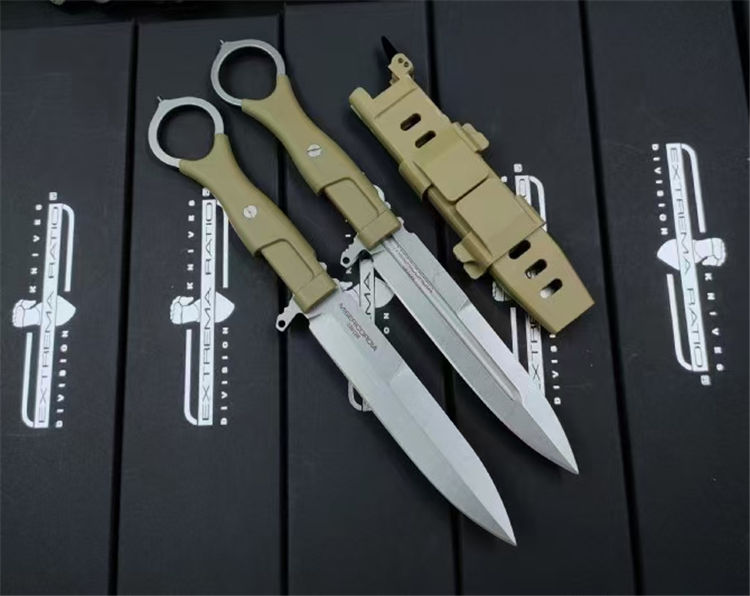 极端武力MISERICORDIA直刀 全长:236mm 刃材:进口N690钢,深冷热处理 硬度:58-60HRC 刃厚:3.8mm 刃长:116mm 切割:111mm 最宽处:21mm 表面处理:钢本石洗/黑色镀钛 柄材及处理:尼龙玻纤 柄厚:15mm 柄长:120mm 柄最宽处:21mm 配战术尼龙玻纤鞘 重量:92g(净重)/123g(带刀鞘)