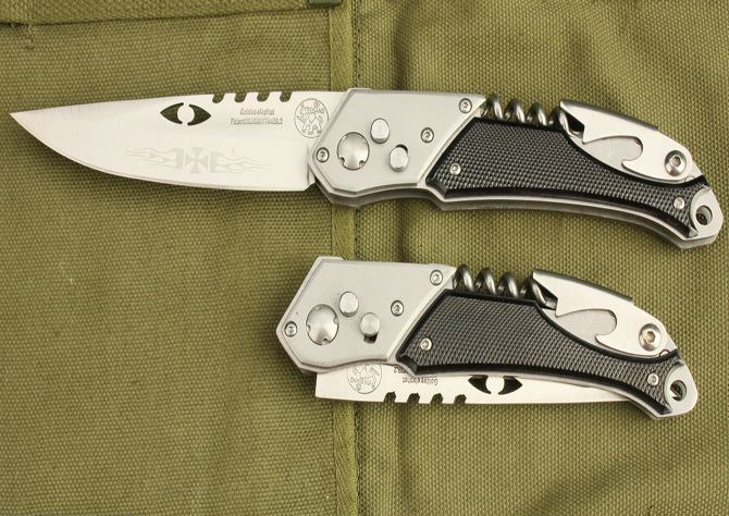 象牌多功能弹跳刀A型 全长:230mm 刃长:110mm 刃宽:26mm 闭合:130mm 刃厚:2.4mm