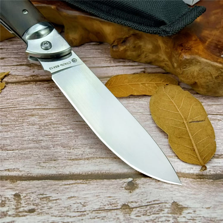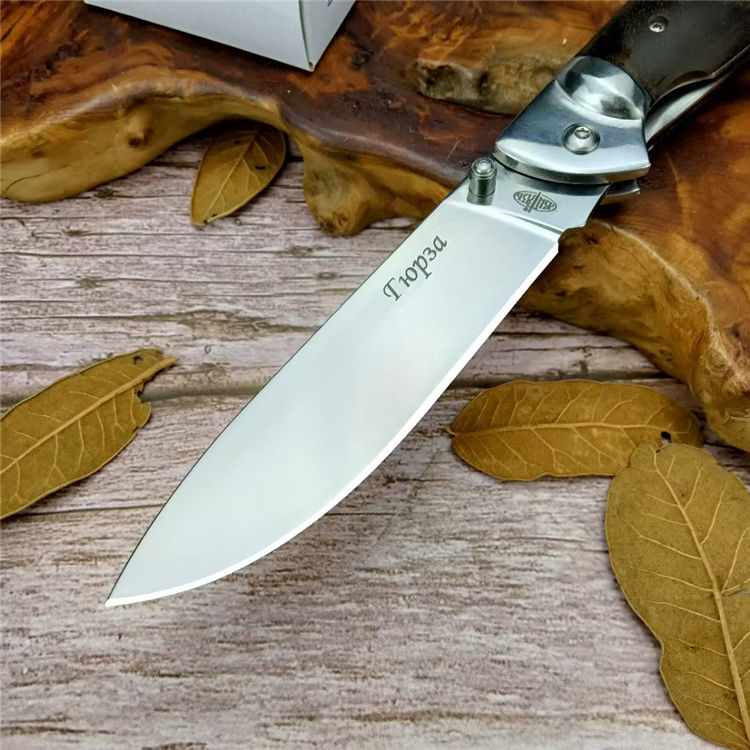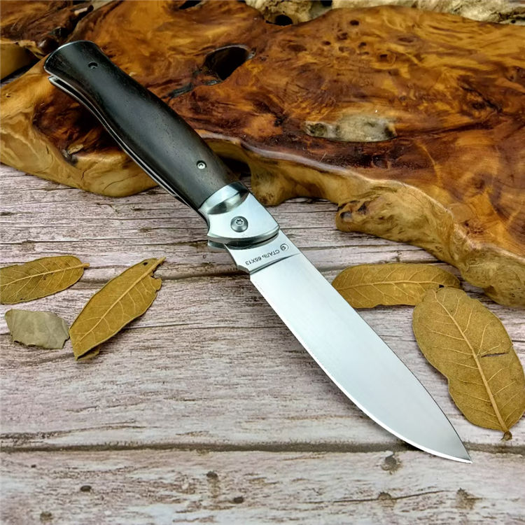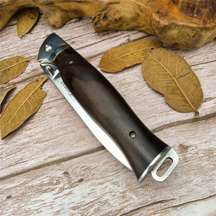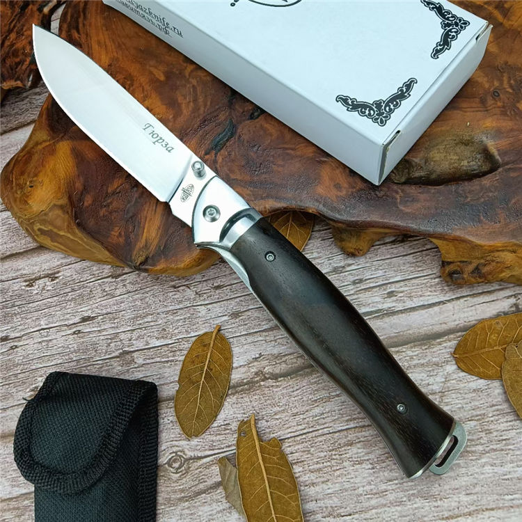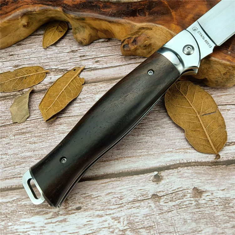 俄罗斯黑檀折刀 总长:24.2CM 刃长:10.4CM 刃宽:2.3CM 刃厚:2.5MM 刃材:440C 柄材:黑檀木 柄长:13.8CM 柄宽:25MM 柄厚:22MM 重量:175G