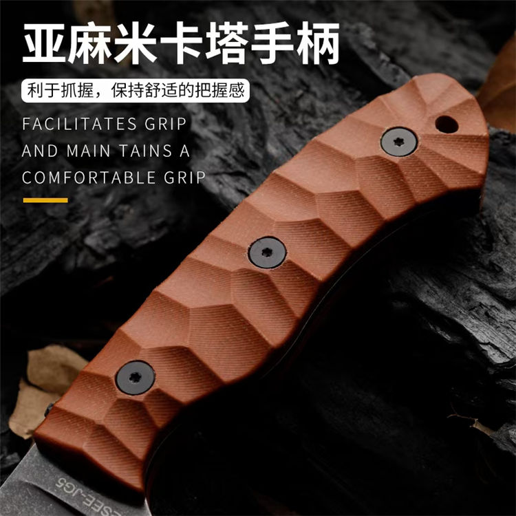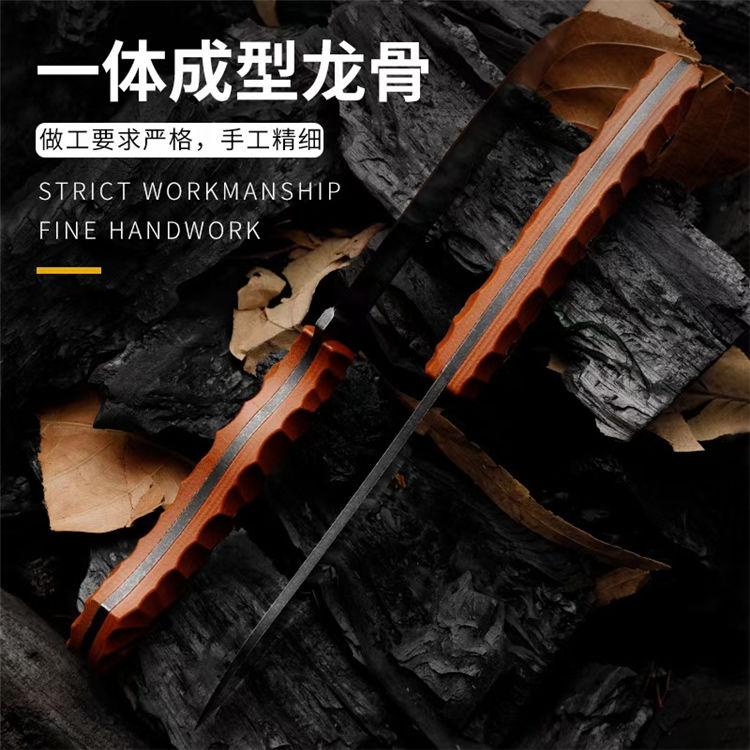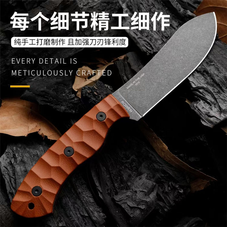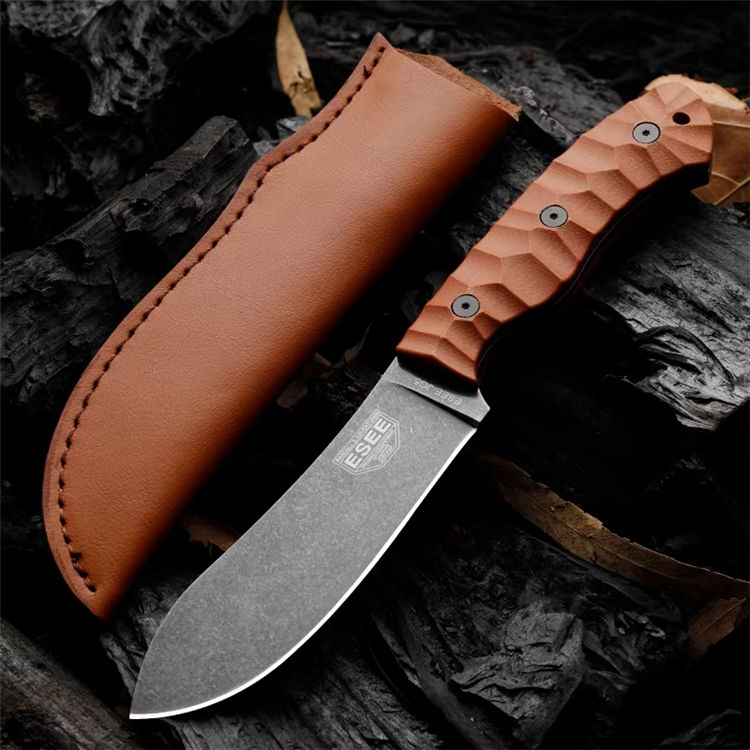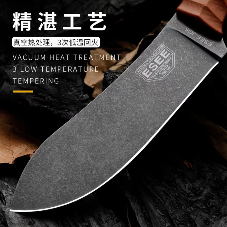 美国ESEE-JG5直刀 全长:245mm 刃长:120mm 柄长:125mm 刃材:1095高碳钢 刃厚:3mm 硬度:59HRC 表面:沧桑石洗 柄材:亚麻米卡塔 刃套:皮套 重量:315g 包装:黑色礼盒