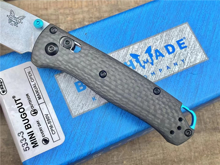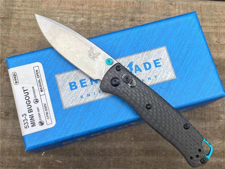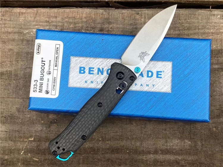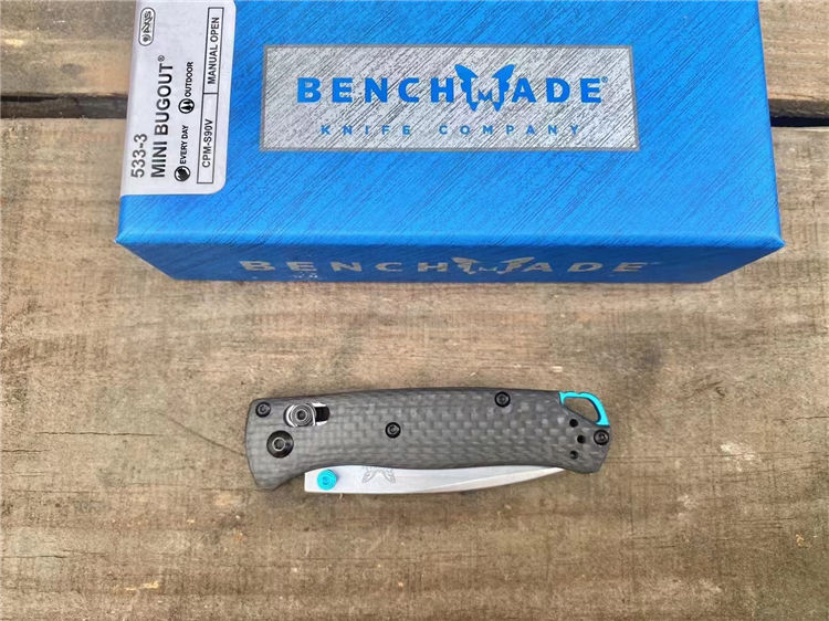 蝴蝶533-3折刀 全长:16.5cm 刃长:7cm 柄长:9.5CM 刃厚:2.3mm 刃材:s90v 硬度:58HRC 表面:石洗 柄材:碳纤维 结构:AXIS Lock轴锁 刀重:46g 重量:120g(含包装盒) 包装:原装彩盒 说明书 绒布袋