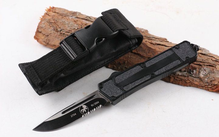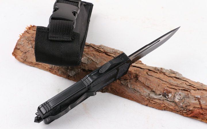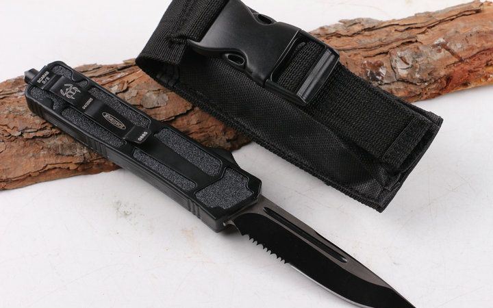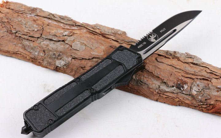 微技术圣甲虫单锋半齿直跳(黑色) 开启长度:22CM 合起长度:13.5CM 刃 厚:0.4CM 硬 度:57 HRC 刃 材:440c 表 面:发黑 把 手:航空铝合金+钢砂 净 重:220克(整刀) 毛 重:300克(含包装物)开 合:双动作,直推开关,自动弹出和收回(刀头比较牢固,只有很轻微的摇动) 包 装:耐磨专用战术尼龙套。 口袋刀夹:弹簧刀夹玻璃敲击器:钨质玻璃敲击器