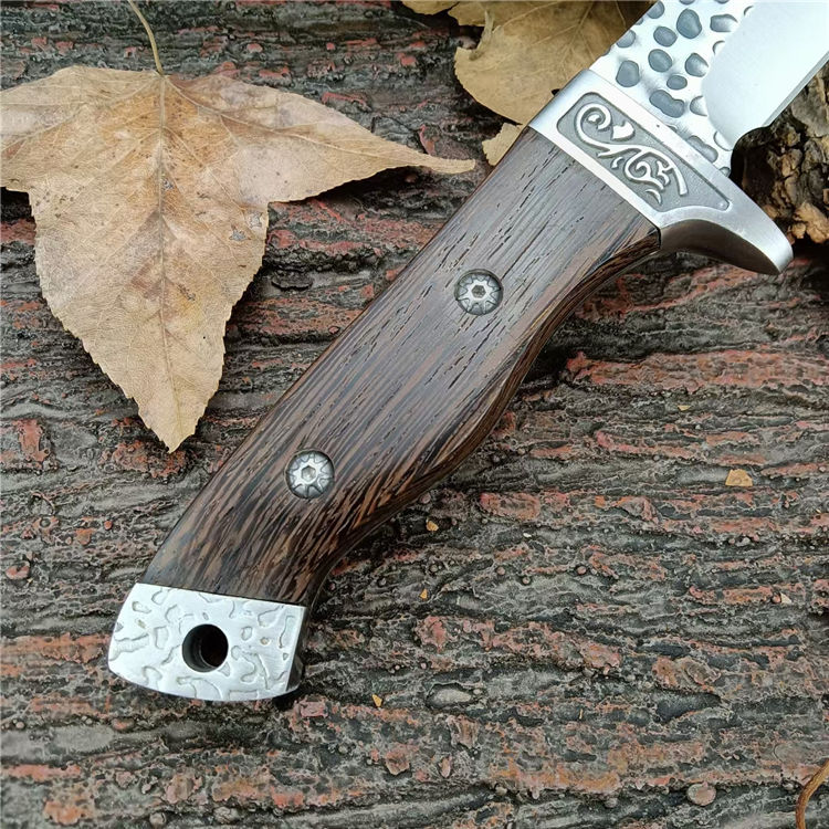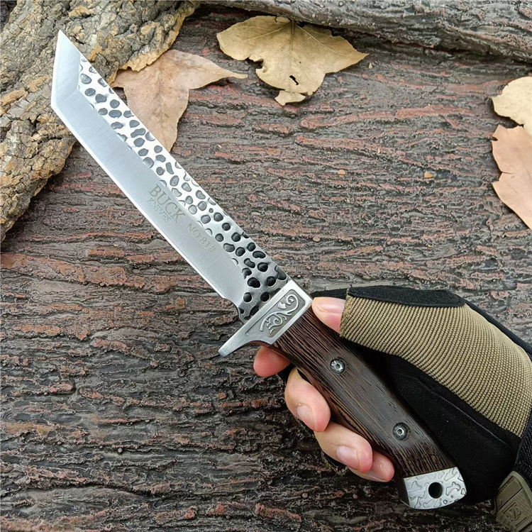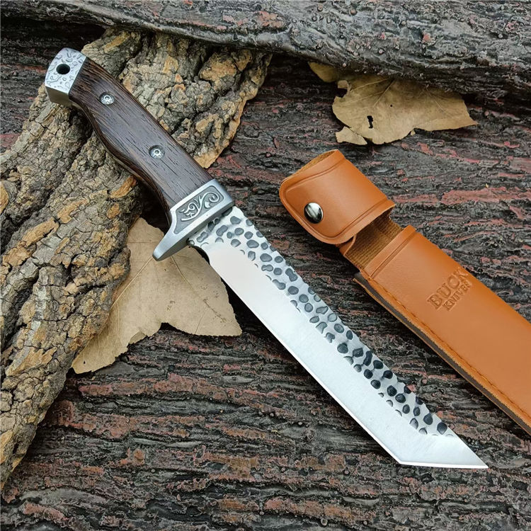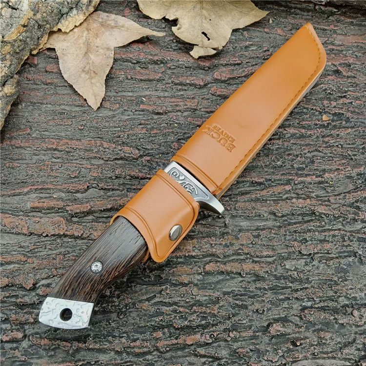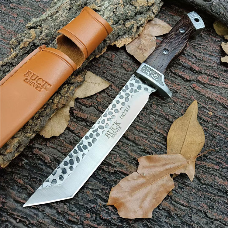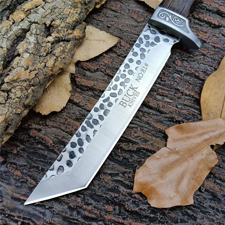 巴克N81直刀 总长:30.1CM 刃长:17.5CM 刃宽:3CM 刃厚:4MM 材质:7Cr13Mov锻打钢 柄材:不锈钢护手+鸡翅木 柄长:12.6CM 柄宽:26MM 柄厚:18MM 重量:300G 刀鞘:PU皮鞘