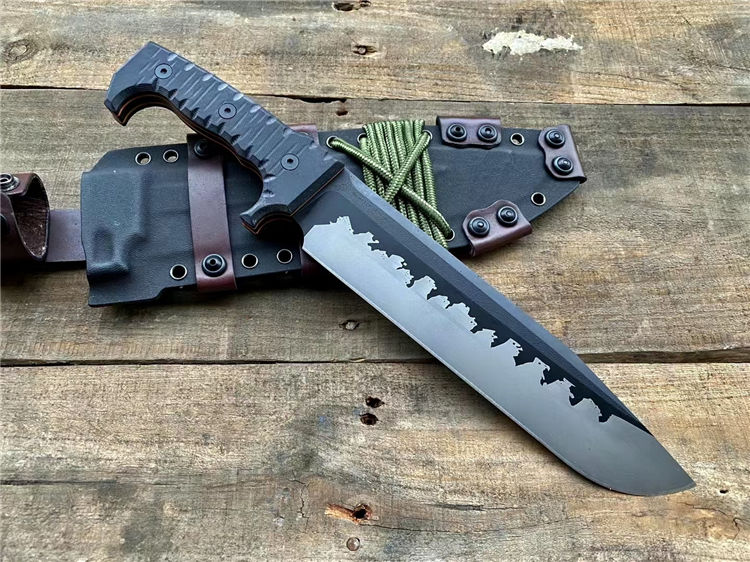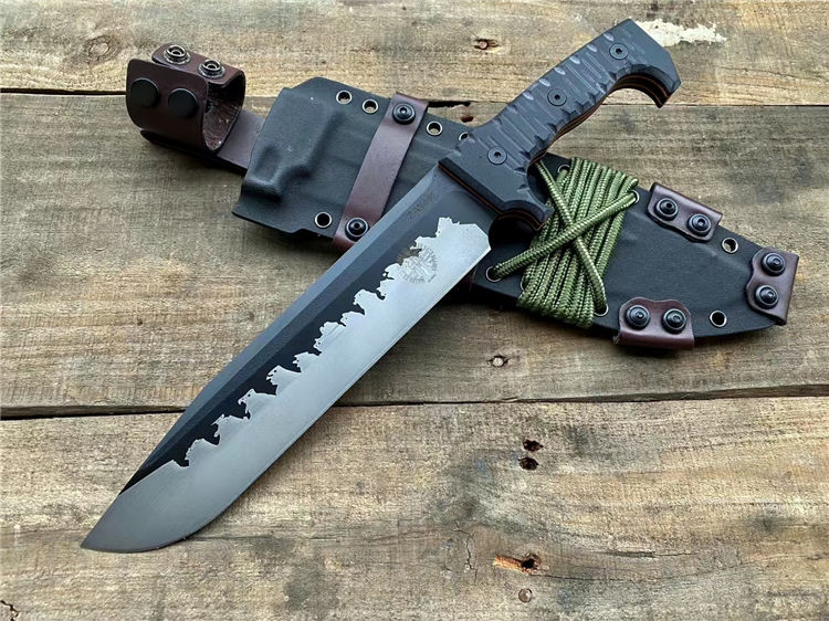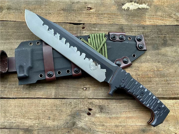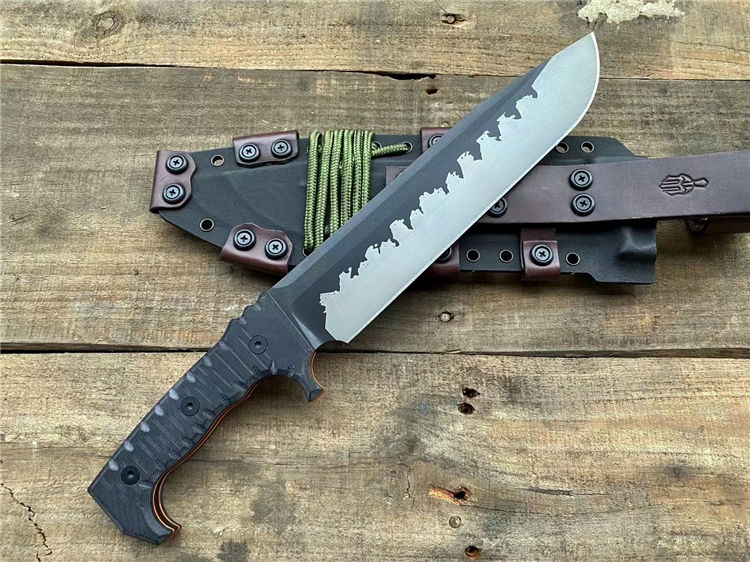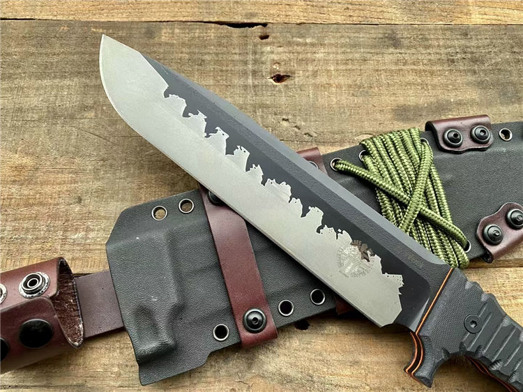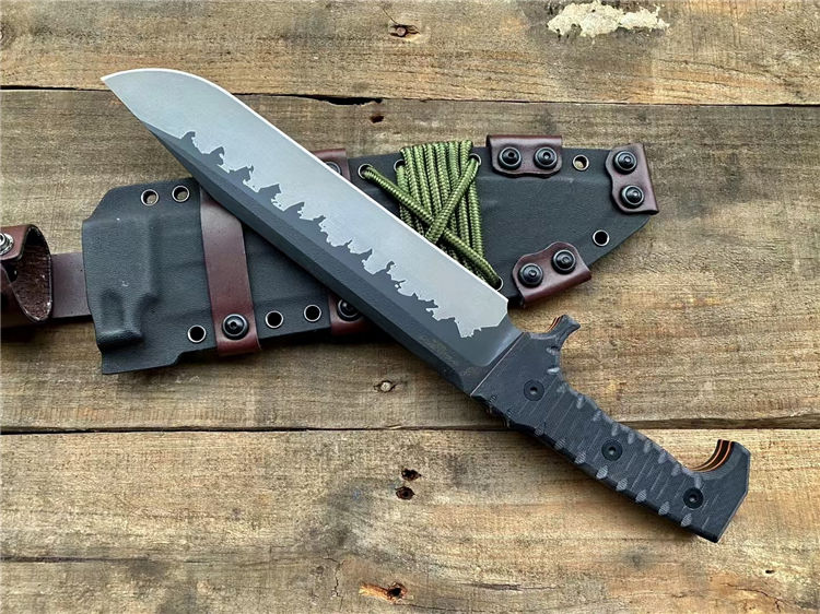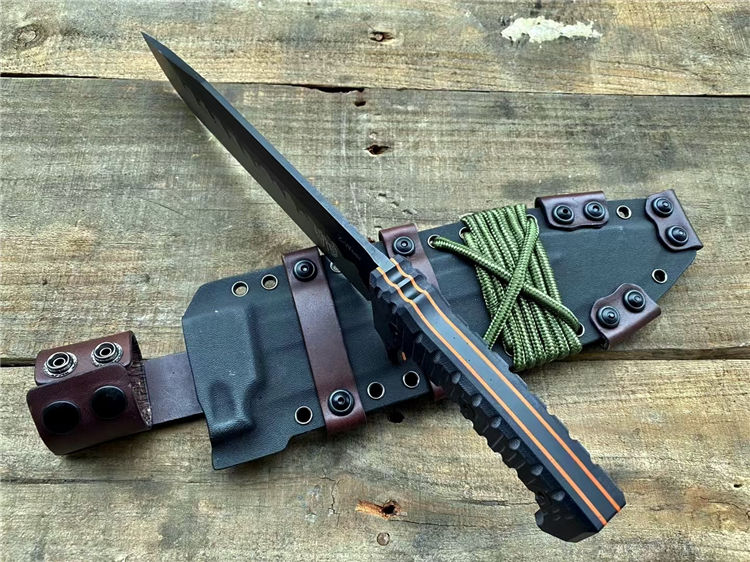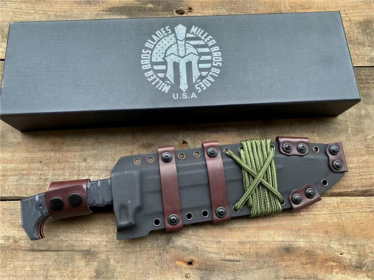 米勒M8重量型直刀 全长:378mm 刃长:232mm(开刃部分) 柄长:130mm 刃宽:48mm 刃厚:6.2mm 刃材:DC53钢 刀重:600g 毛重:888g (含鞘) 硬度:60+HRC 热处理:专业真空深冷让处理油淬 表面:高级密度黑钛工艺 柄材:红黑双色G10 结构:一体龙骨成形 配套:进口K鞘+进口意大利手工制作植鞣皮 包装:黑色手工盒子(合作代工出口版简包)