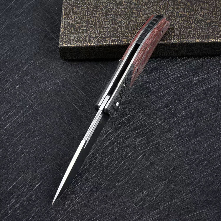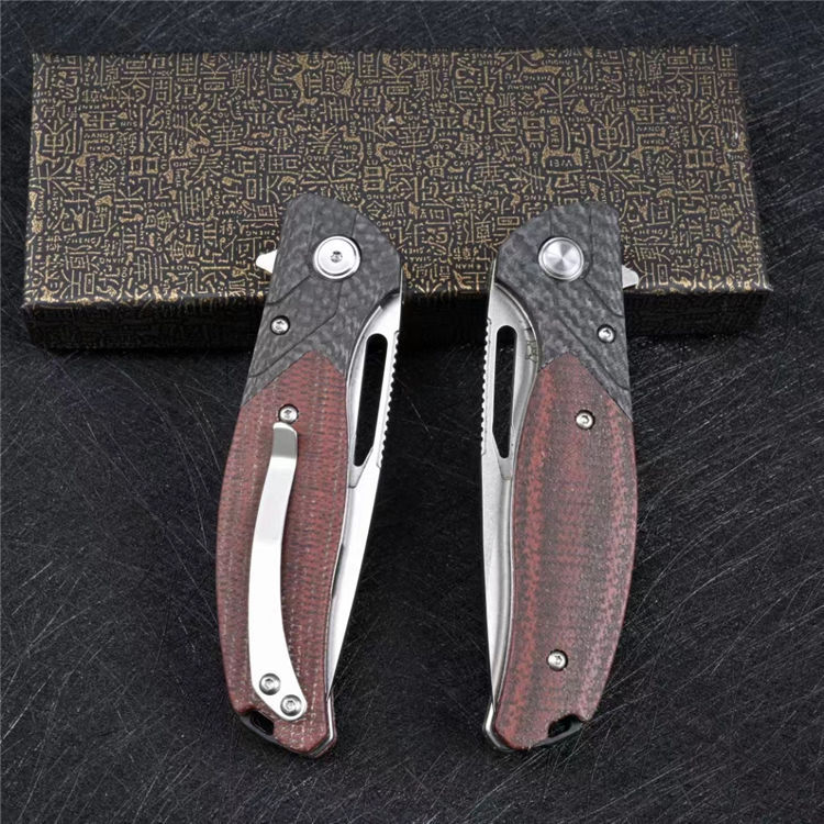 俄罗斯熊头F3折刀 全长:19.3cm 刃长:8.5cm 柄长:11.1cm 刃厚:0.3cm 刃宽:2.6cm 刀重:109.5g 毛重:146.5g 钢材:M398钢 柄材:碳纤维+亚麻 硬度:60-61HRC 表面处理:石洗 包装:礼盒