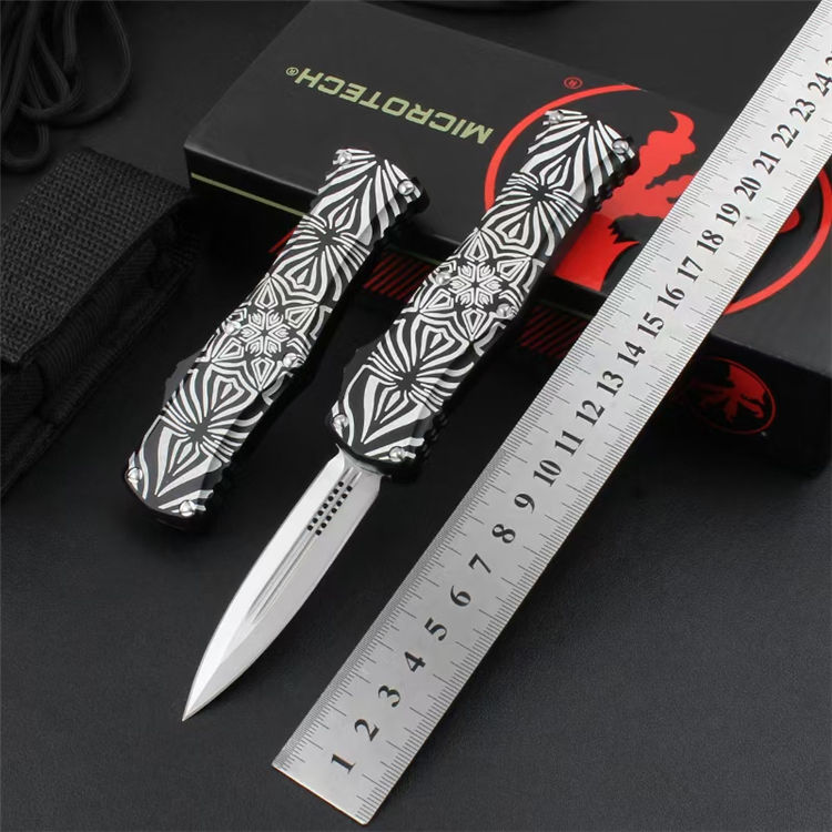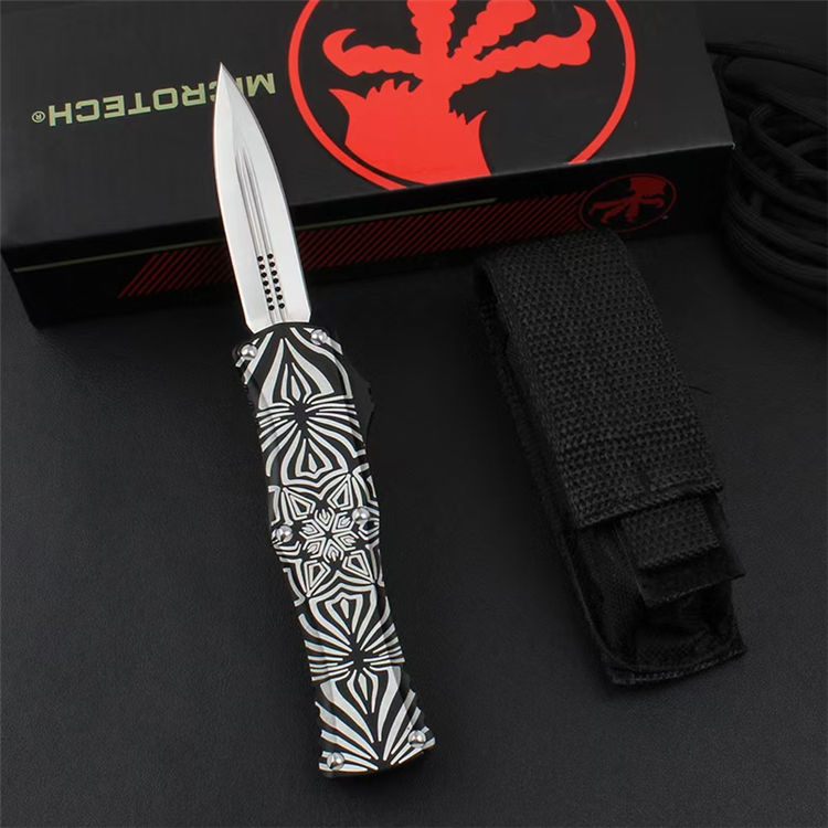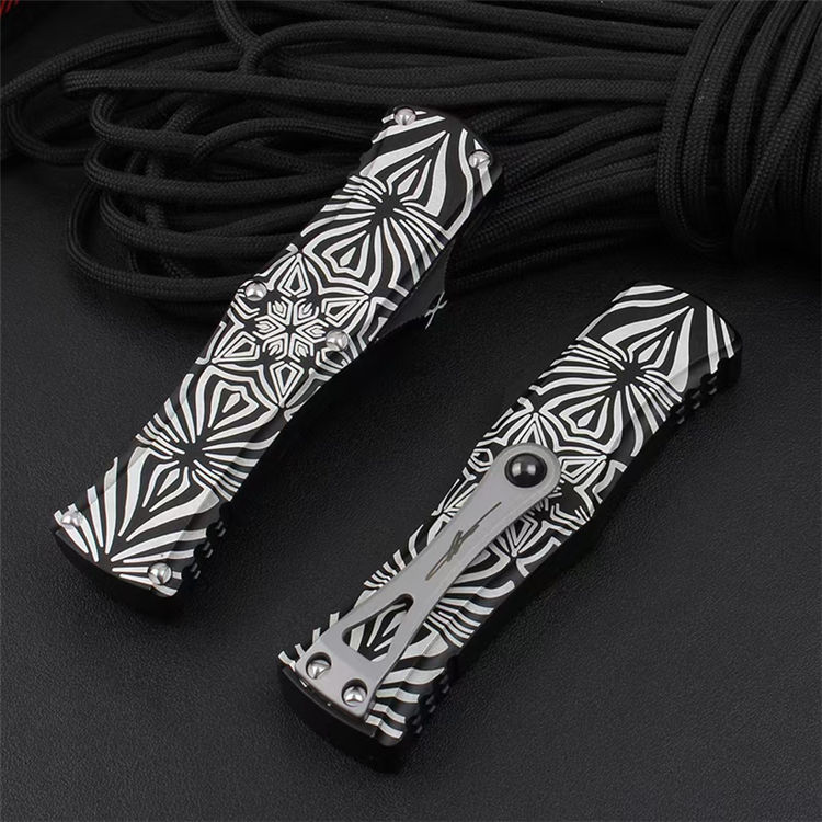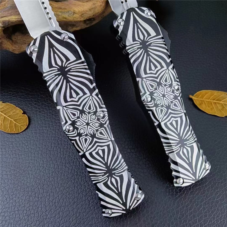 微技术赫拉女神跳刀花纹定制版 全长:19.5cm 刃长:8cm 刃厚:0.3cm 刃材:D2 柄材:太空铝 重量:96g 背夹:氮化硅精密陶瓷珠背夹 赫拉女神Hera起(Source)手柄图案由著名女艺术家设计。彰显这支赫拉的与众不同