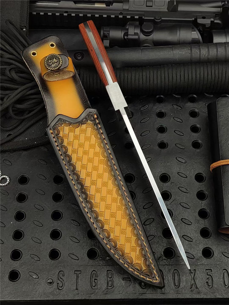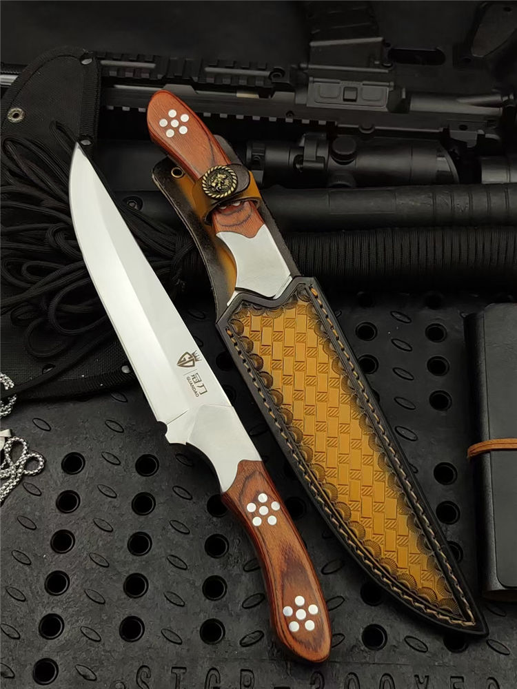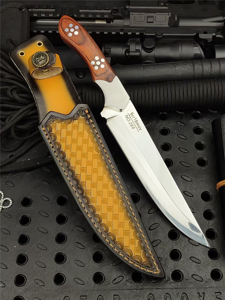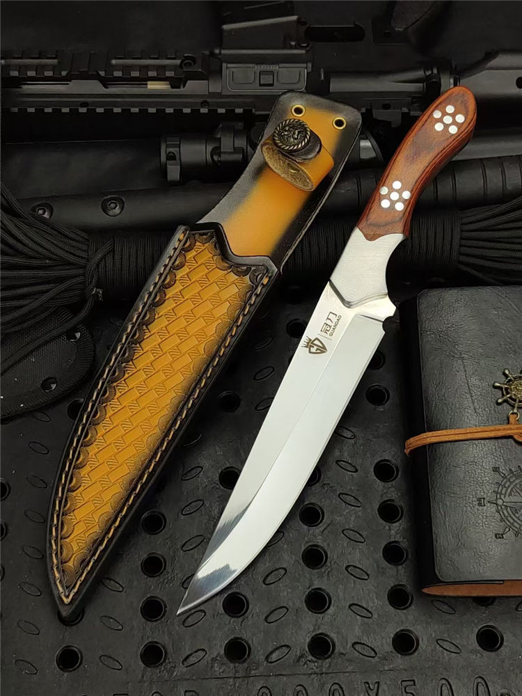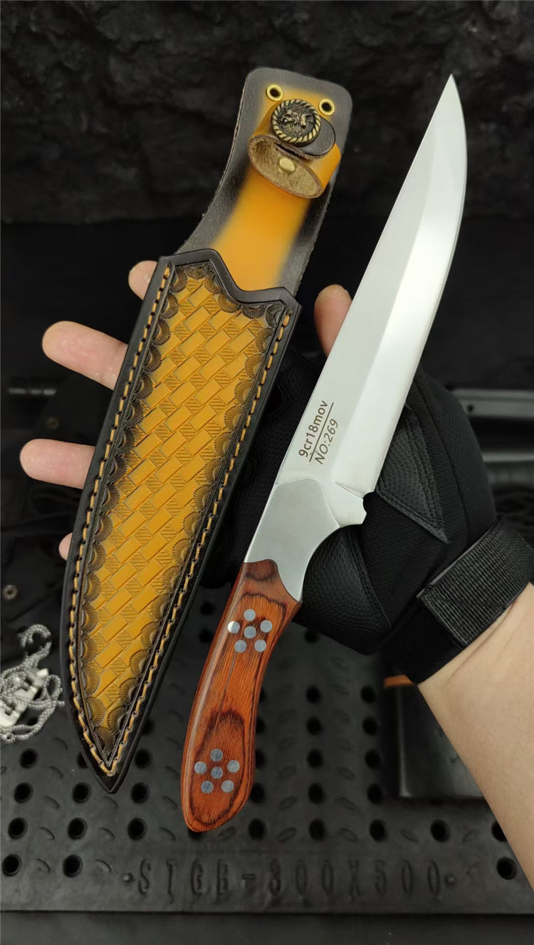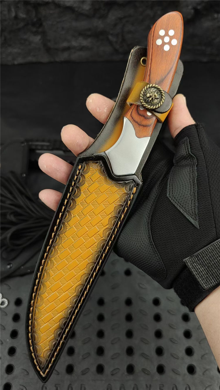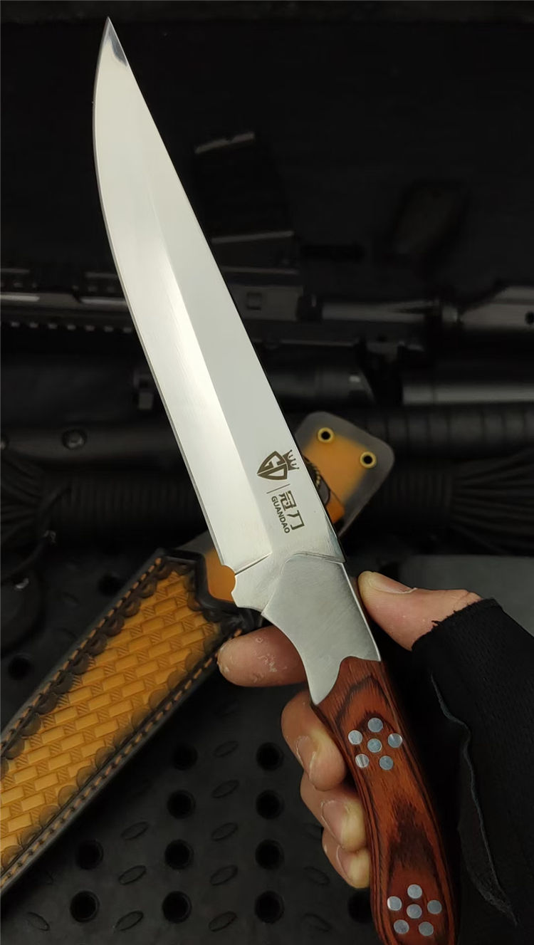 光影直刀 全长:300mm 刃长:168mm 柄长:130mm 刃宽:35mm 刃厚:5.0mm 刃材:9Cr18Mov深冷处理 刀重:336g/410g含套 毛重:530g 硬度:58HRC 表面:超镜光可照镜 柄材:彩木+不锈钢钢头 结构:一体龙骨成型 包装:意大利进口压花皮套+外贸黑礼盒