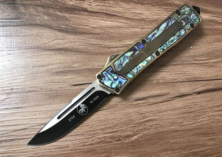 开启长度:22CM 合起长度:13.5CM 刃 厚:0.3CM 硬 度:57 HRC 刃 材:440c 表 面:发黑 把 手:航空铝合金+鲍鱼壳 净 重:220克(整刀) 毛 重:300克(含包装物) 开 合:双动作,直推开关,自动弹出和收回(刀头比较牢固,只有很轻微的摇动) 包 装:耐磨专用战术尼龙套。 口袋刀夹:弹簧刀夹玻璃敲击器:钨质玻璃敲击器