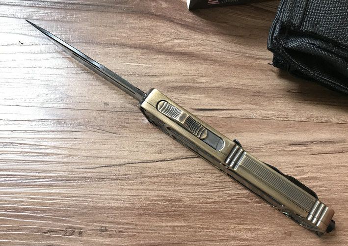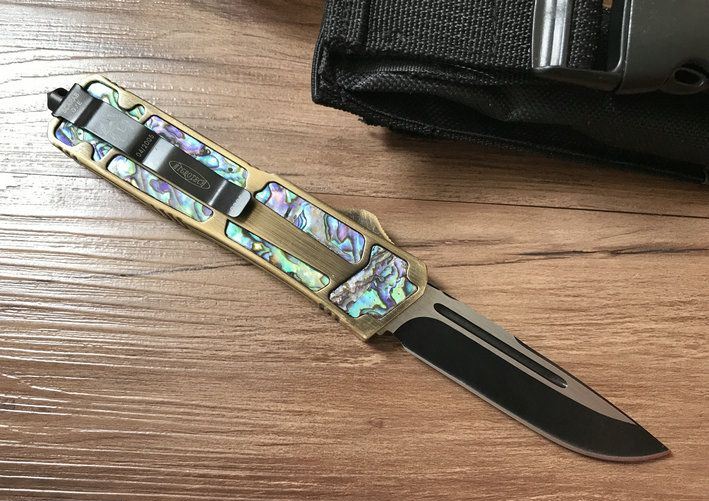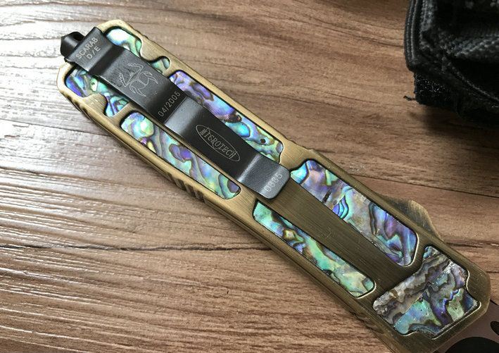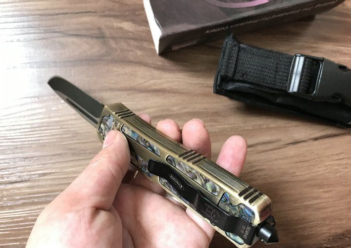 单锋全刃圣甲虫-鲍鱼壳珍藏版(金色) 开启长度:22CM 合起长度:13.5CM 刃 厚:0.3CM 硬 度:57 HRC 刃 材:440c 表 面:发黑 把 手:航空铝合金+鲍鱼壳 净 重:220克(整刀) 毛 重:300克(含包装物) 开 合:双动作,直推开关,自动弹出和收回(刀头比较牢固,只有很轻微的摇动) 包 装:耐磨专用战术尼龙套。 口袋刀夹:弹簧刀夹玻璃敲击器:钨质玻璃敲击器