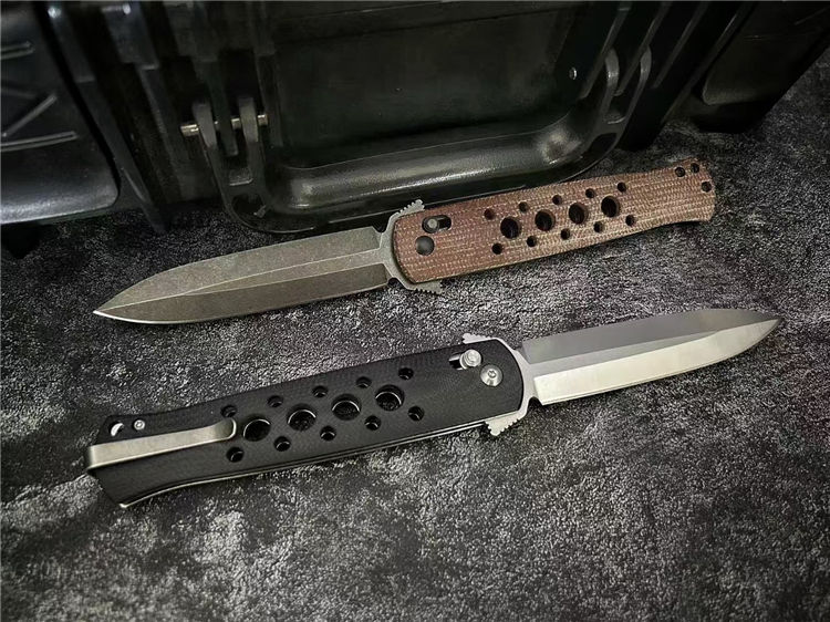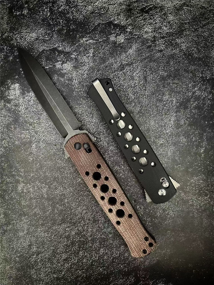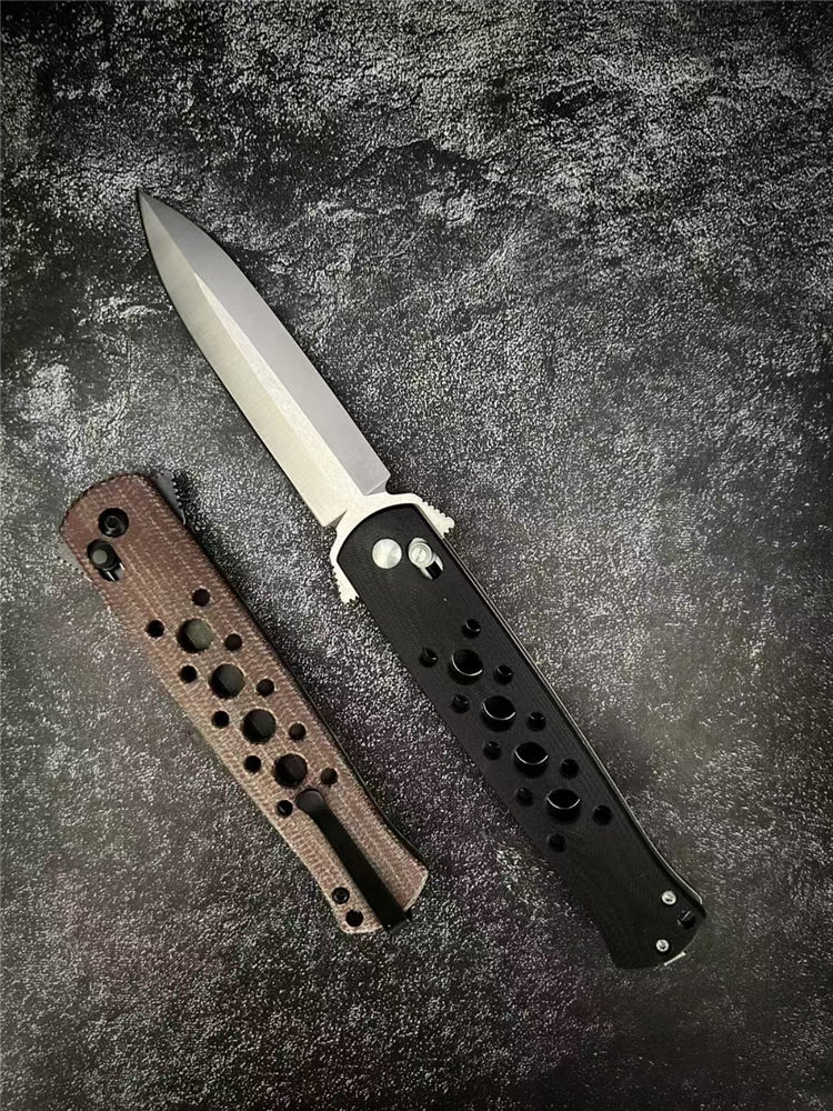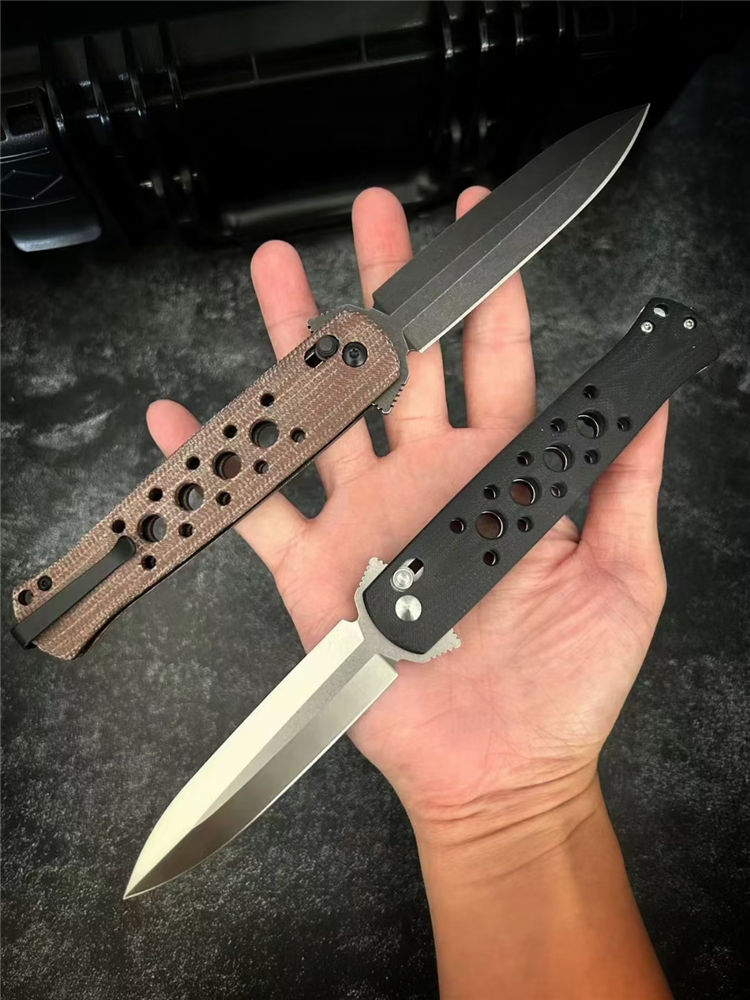 剑鱼快开折刀 全长:22cm 刃长:9.3cm 柄长:11.7cm 刃宽:2.1cm 刃厚:2.8mm 刃材:D2(刀刃数控磨工处理) 刀重:113g 硬度:60HRC 表面:精细沙光/沧桑石洗 柄材:黑色G10/棕色亚麻 螺丝:所有螺丝420不锈钢材料 结构:线锁结构、陶瓷定位珠、内置平面滚针轴承垫片