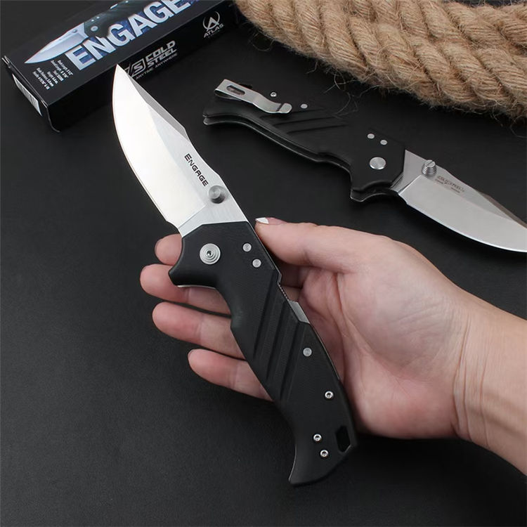 冷钢35DPLC折刀 全长:206mm 刃长:88mm 柄长:118mm 刃厚:3.7mm 最宽处:30mm 柄厚:13mm 钢材:D2钢,钢本拉丝(深冷热处理) 硬度:59-60HRC 柄材及处理:G10(CNC加工成型)原装礼品盒包装 净重:186g 总重量:196g含包装