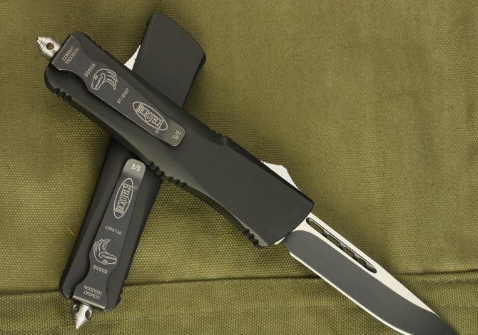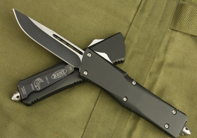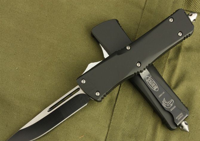 微技术-伤齿龙(第二代单锋全刃) 全 长: 24.2cm 刃 长: 9.5cm 刃 厚: 3mm 刃 材: 440A 硬 度: 58HRC 重 量: 150 表 面: 钛离子 柄 材: 锌铝合金 刀 鞘: 尼龙 锁 闭: 其它 补充说明:直出弹簧刀的点头现象得到控制,第二代的质量可以和目前正在销售的(圣甲虫)相谐美,出刀比(圣甲虫)轻而快!手感特好!