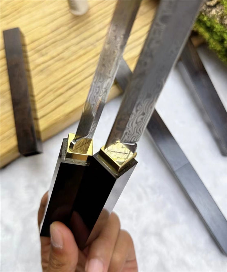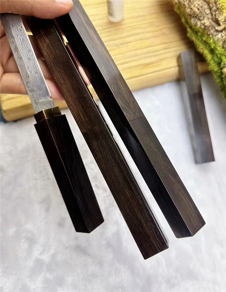 柄材:纯黄铜镶嵌+老料黑檀木