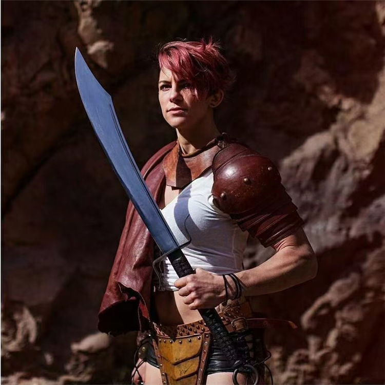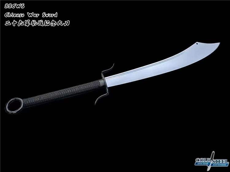 冷钢西北29军抗战大刀 全长:96cm 刃长:59cm 刃厚:0.57cm 刀柄:木质缠绳 刀鞘:皮质 冷钢出品 中国抗战大刀中的名刀,赫赫有名的西北二十九军大刀队。双手持刀,劈砍护驾犹如黄油一般,多少革命前辈用血和汗水拿着这把刀冲向小日本的阵地,与其肉搏