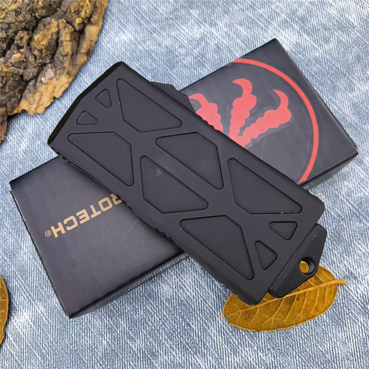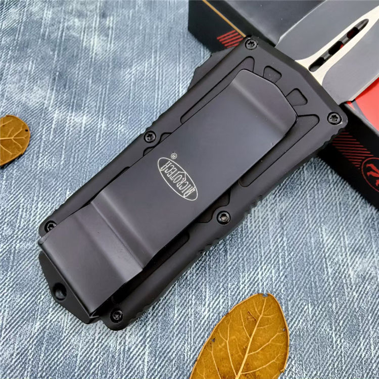 微技术普通版飞鱼钱夹跳刀 总长:14.1CM 刃长:4.8CM 刃宽:2.8CM 刃厚:1MM 材质:440C 柄材:锌合金 柄长:9.3CM 柄宽:36MM 柄厚:9MM 重量:170G