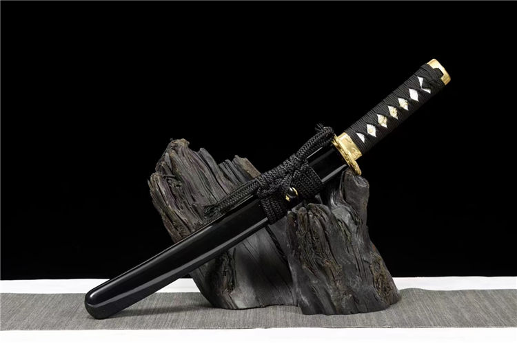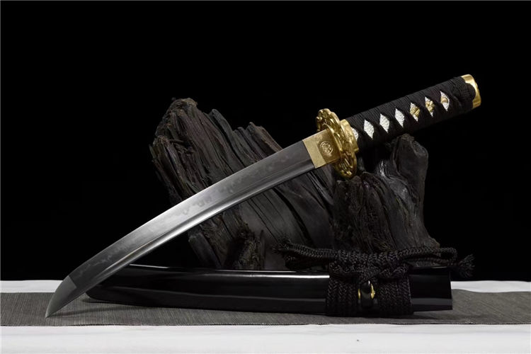 助差吉冈武士刀 全长:55cm 刃长:33cm 柄长:17cm 刃宽:3.2cm 刃厚:0.6cm 重约:0.7KG 装具:纯铜精雕刀镡 刃材:高性能T10烧刃寒气逼人,实木大漆鞘 赠:高端锦盒 特点:钢材T10钢材锻打,采用古法覆土烧刃淬水工艺,手工17道精致水磨,高硬度,刚性强