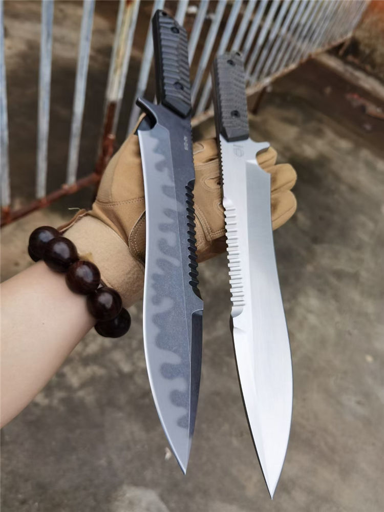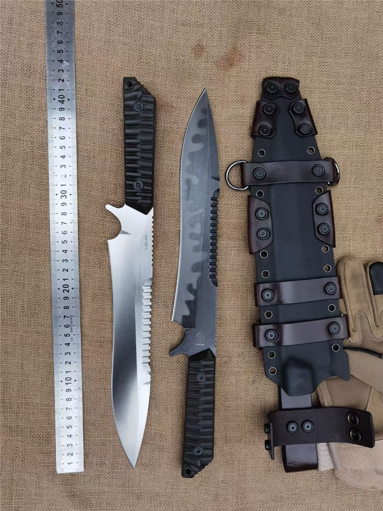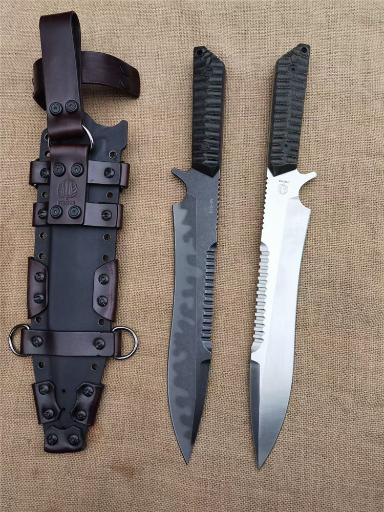本刀灵感来源于cs游戏里面的海豹战术刀,经过改装加工,形成独特的STRⅠDE风格,ST手工刀具昂贵,家喻户晓,现在送上质优价廉的,ST风格战术直刀,让广大刀友用最低的价格买到质量好的刀具,是我们一贯的追求,海豹采用A2真空深冷热处理,A2大家都很熟悉了,韧性保持都很好的模具钢,和A8相当,实操收藏都是理想选择,采用数控V磨,精确对称,手工打磨钢本细致,拉丝漂亮,迷彩低调沉稳,各领风骚,凌利的背齿,野性张狂,肯齿略显加工难度大,废品高,定制的亚麻手柄,稀罕耐操