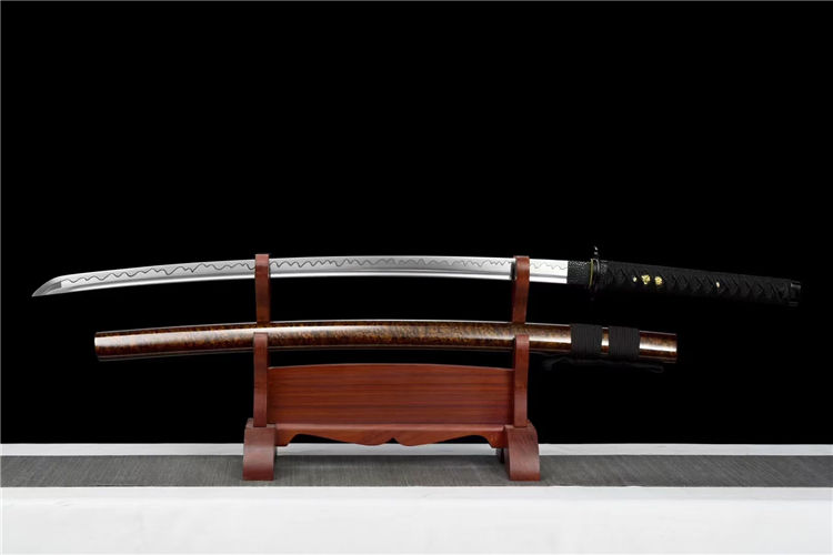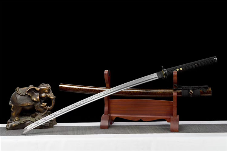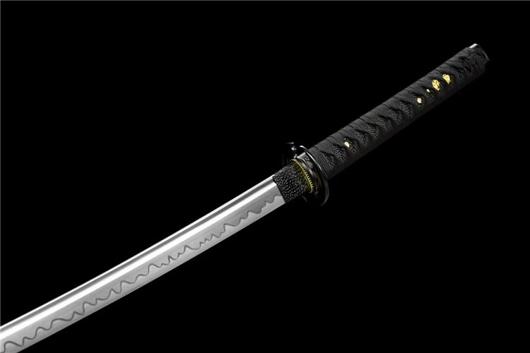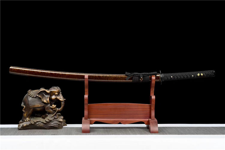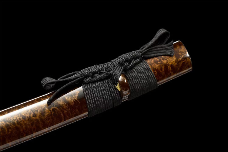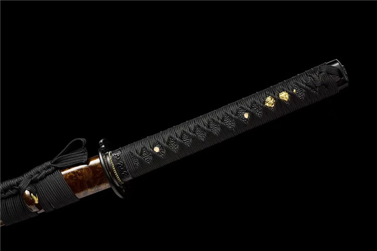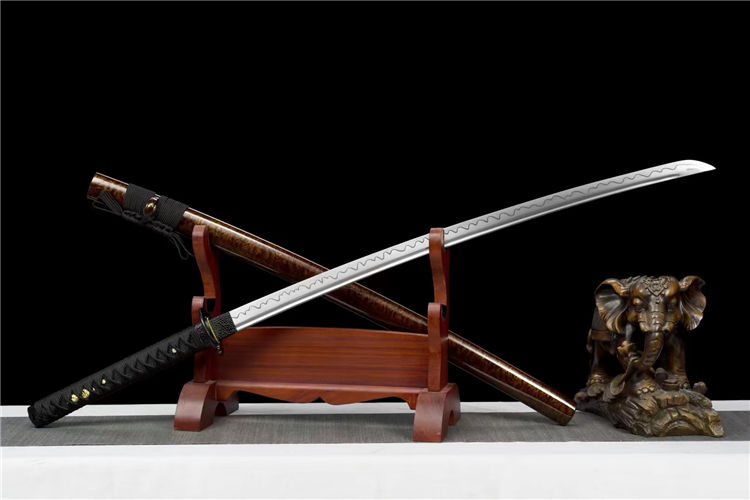 啸月武士刀 全长:103cm 刃长:72cm 柄长:26cm 刃宽:3.2cm 刃厚:0.7cm 重约:1.1KG 刃材:高锰钢手工研磨 装具:合金刀镡 鞘材:实木油漆 柄材:实木绕绳 下续:金皮下续 适合:收藏 防身 情侣配送 乔迁送礼 武术健身 精美摆设 赠品:高端锦盒、护理油 工艺:刀身千锤百炼、经打胚、热锻、铲、锉、磨、热处理(淬火)回火、初修、精修、等龙泉古法数十道手工制作而成