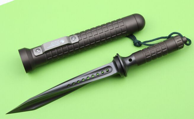 Microtech微技术为Jagdkommando 定制的三棱特战刀,Jagdkommando 是奥地利特种部队精英集团的名字。这款定制军刀有着独一无二的设计,三条螺旋形刃,每一天刃都双面开封,轴心处都有立体排水口,设计巧妙绝伦!刀尾部为可卸下防水旋盖,可以内置求生工具包。刀鞘刀柄均为铝合金(带防水圈),旋转型收刀和出刀、整刀设计具有microtech微技术的灵动和邪恶的特色!