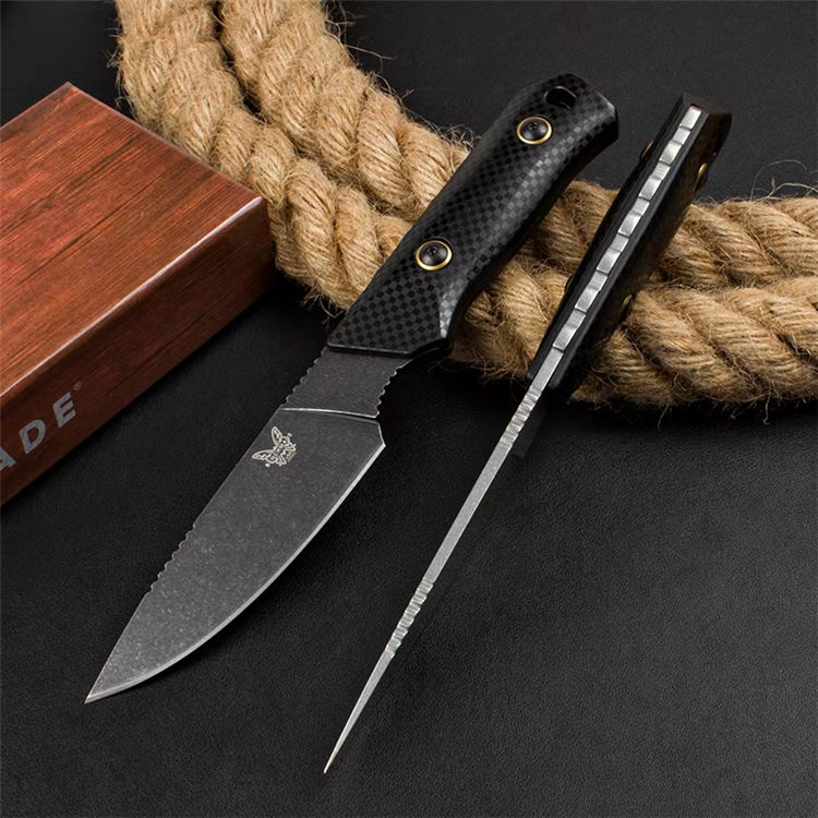 蝴蝶15600狩猎直刀 全长:225mm 刃长:102mm 刃宽:33mm 柄长:110mm 刃厚:4mm 刃面:石洗或黑色石洗 刃材:D2钢 净重:143g 重量:285g(含包装) 刀鞘:尼龙玻璃纤维Santoprene 柄材:尼龙玻璃纤维Santoprene 热处理:真空淬油热处理 硬度:58-60HRC 包装:原装金盒