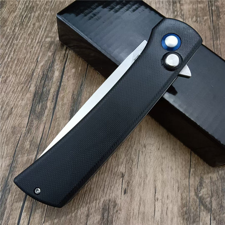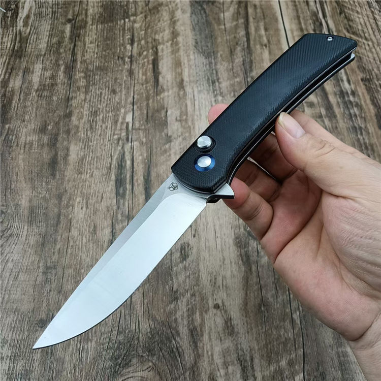 熊头按钮折刀 总长:23CM 刃长:10CM 刃宽:2.6CM 刃厚:4MM 材质:D2 柄材:G10 柄长:13CM 柄宽:25MM 柄厚:13MM 重量:185G
