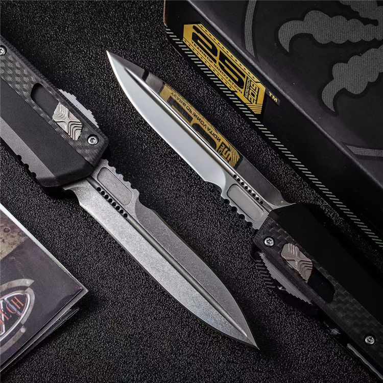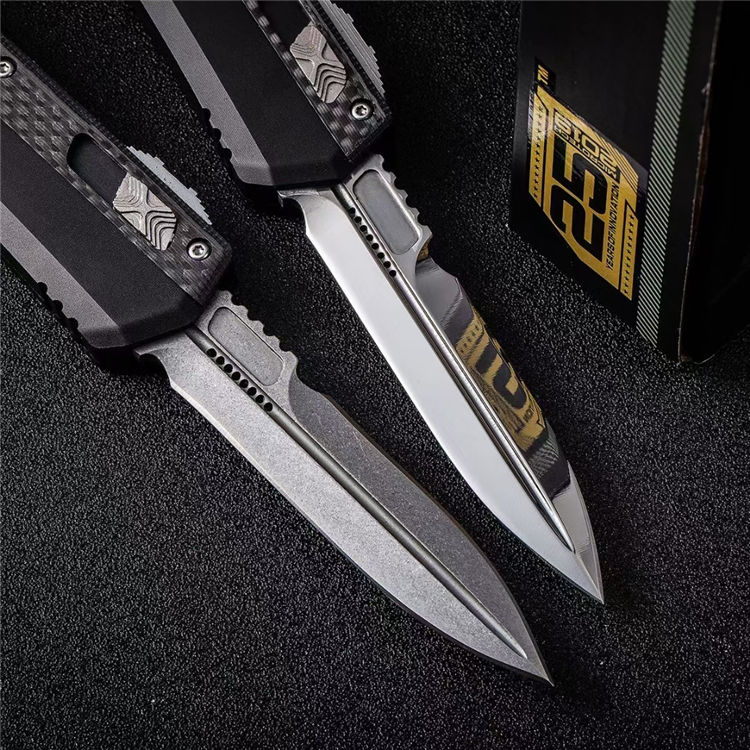 微技术碳钎版蛇神直出跳刀 总长:215mm 刃长:89mm 柄长:133mm 刃厚:3.6mm 刃材:D2高速钢 柄材:T6061航空铝材 硬度:58-60HRC 刃工艺:数控机床水磨处理 柄工艺:二次手工镜面 机制:自动直线跳出+自动收刃产品 总重量:135.5g 产品描述:任何一个有过作战经验的人都知道战争中减轻不必要的重量可以提高灵活作战机动性,外贸款式机加工几乎都来自CNC数控机床,所有配件精确到丝公差位,搭配米花螺丝及专用礼盒套装