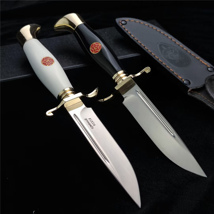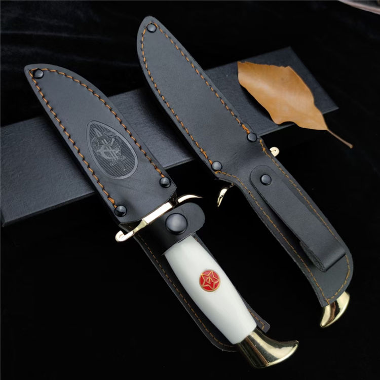 爱国者二代直刀 总长:25.7CM 刃长:13.2CM 刃宽:2.5CM 刃厚:3MM 刃材:440C 柄材:不锈钢护手+亚克力 柄长:12.5CM 柄宽:27MM 柄厚:24MM 重量:240G 刀鞘:PU皮鞘