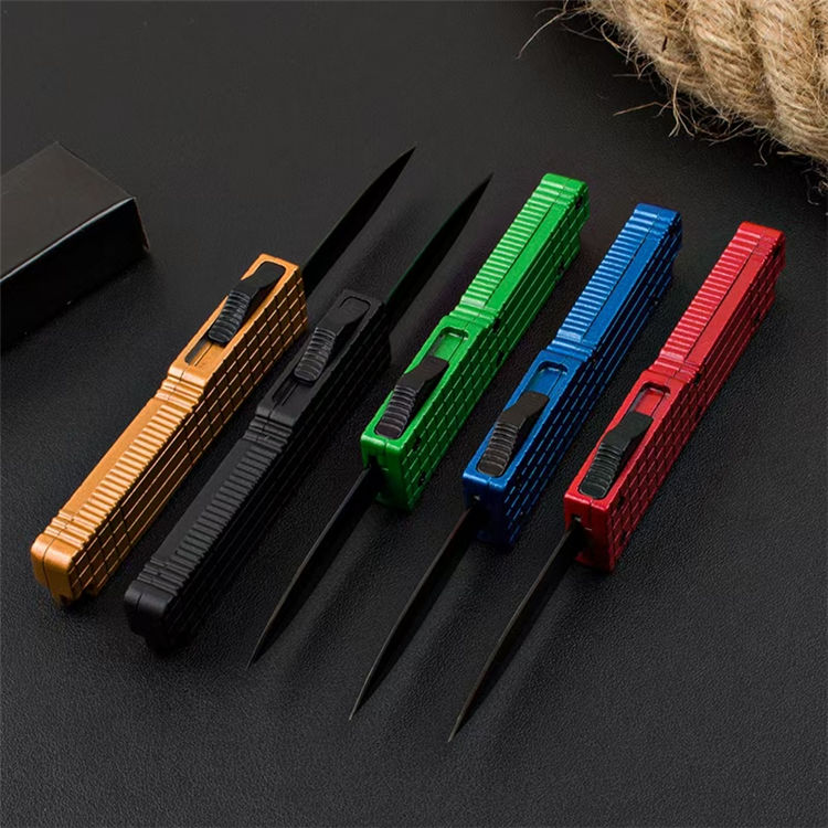 迷你微技术海军直跳刀 全长:13.5cm 刃长:4.5cm 柄长:8cm 刃宽:16mm 刃厚:2.85mm 刃材:5cr15 柄材:锌铝合金 硬度:58HRC 其他:盒子
