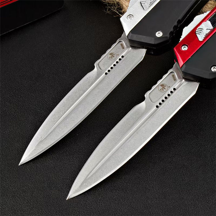微技术锌铝柄蛇神直出跳刀 总长:220mm 刃长:89mm 柄长:130mm 刃厚:3mm 刃材:5Cr15Mov(标M390) 柄材:锌铝合金 表面:石洗拉丝 硬度:58HRC 重量:269g(含包装) 包装:尼龙套+彩盒