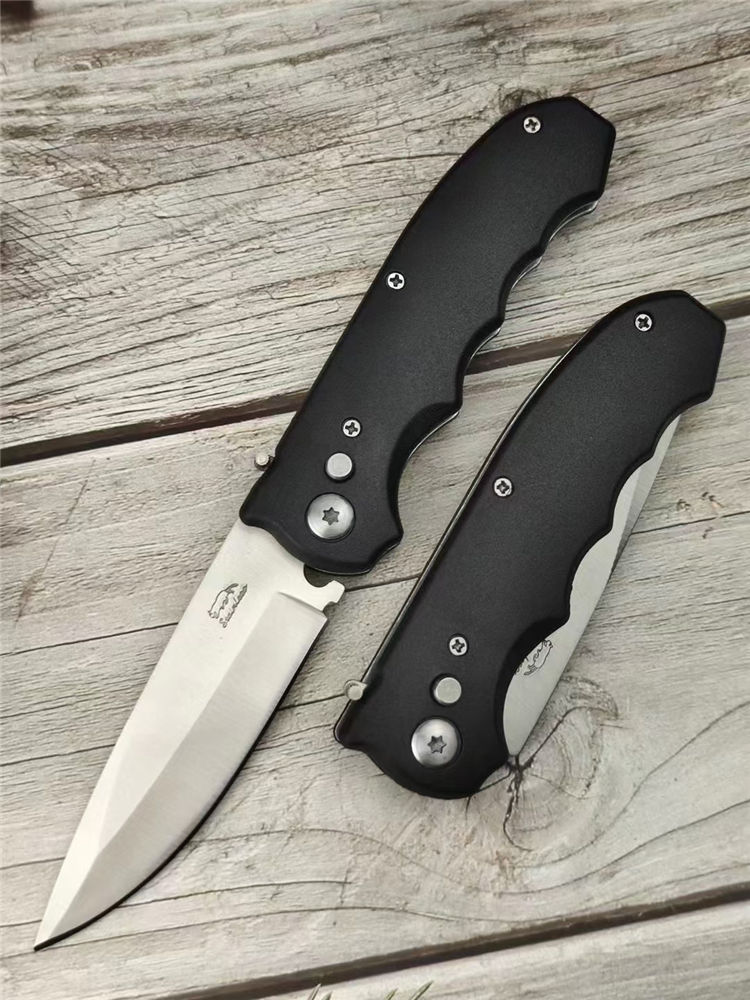 猞猁侧开跳刀 全长:210mm 刃长:90mm 柄长:115m 刃宽:26mm最宽处 刃厚:2.2mm 刃材:440c高温热处理 刀重:120g 毛重:128g(含包装盒) 硬度:58HRC 表面:砂光 柄材:ABS玻纤+钢片 结构:按钮式制动快开 锁型:滑动防开功能 包装:纸盒