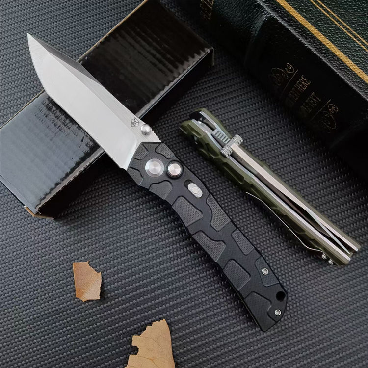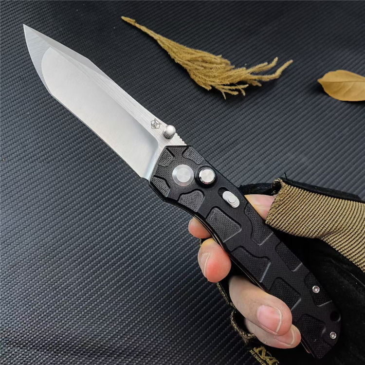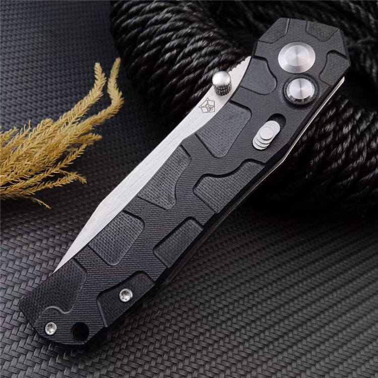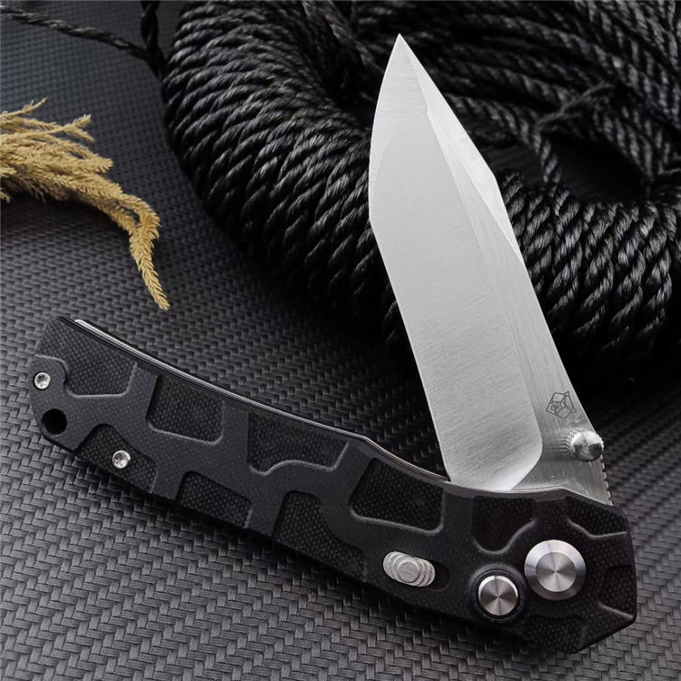 熊头陨石折刀 总长:22.5CM 刃长:9.5CM 刃宽:2.8CM 刃厚:4MM 刃材:D2 柄材:G10 柄长:13CM 柄宽:25MM 柄厚:13MM 重量:185G