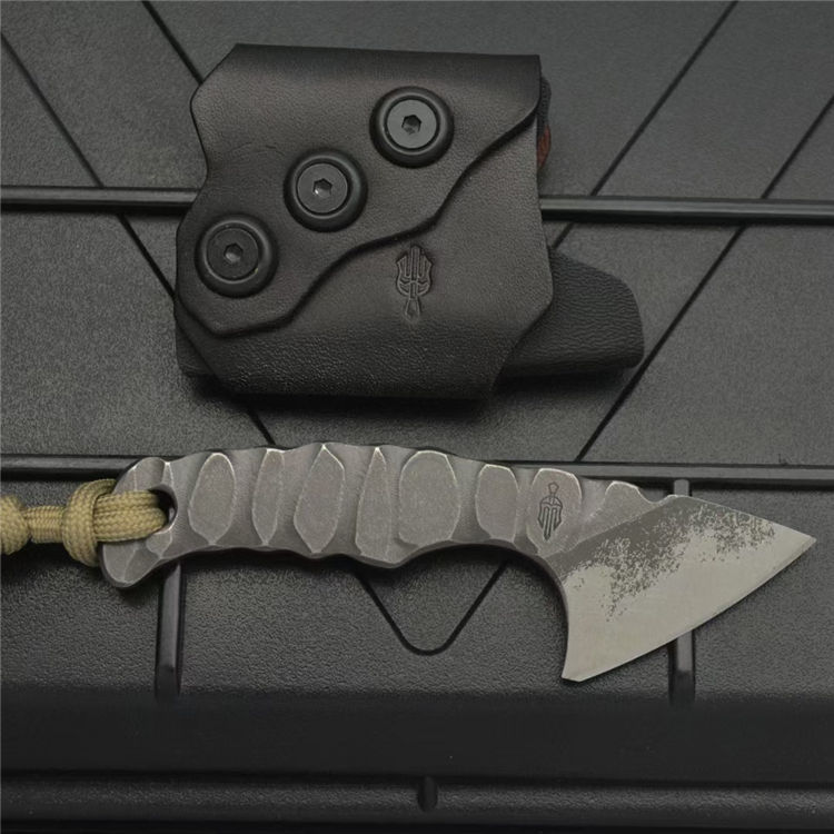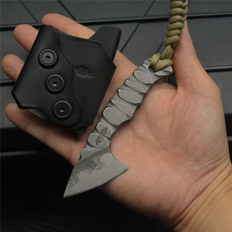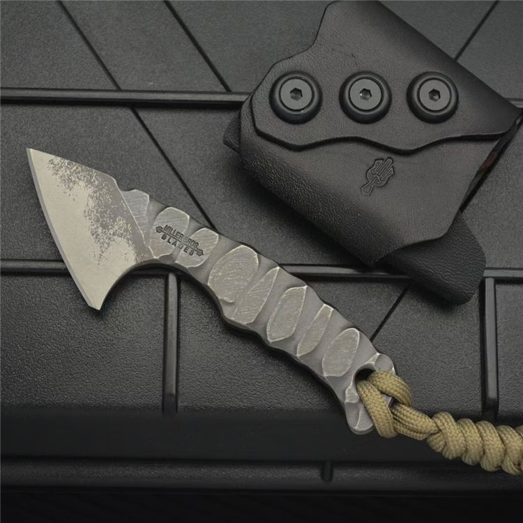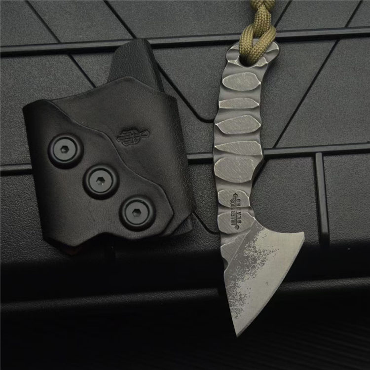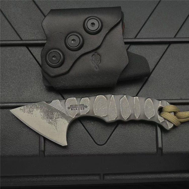 米勒兄弟定制皮带小直刀 全长:11.5cm 刃长:4.5cm 柄长:7cm 刃宽:2cm 刃厚:5mm 刃材:z-wear 刀重:70g 重量:110g(含鞘) 硬度:59HRC 表面:腐蚀表面 柄材:一体龙骨 刀鞘:K鞘+皮套(可挂皮带) 包装:黑色礼品盒