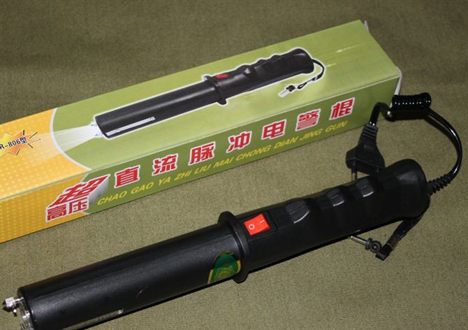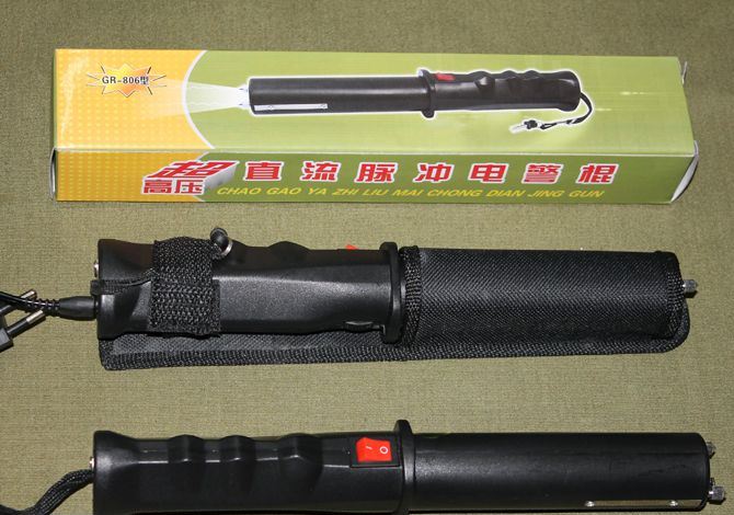超高压脉冲GA-806电警棍 规格:Φ35*276(mm)出口型超高压直流自卫器,白光照明。该产品款式新颖,使用安全方便(带保险装置)。照明距离远,时间长。电击功率大。专为狱警部门设计。防抢利用充电池供电产生1000万伏以上的强电压,使侵犯者丧失抵抗能力,能瞬间制服侵犯者,而这种高电压的工作原理,是不会造成任何伤害,使用时贴近人体或对准对方。产品可长期使用,充电器输入电源为家用220V照明电,充电时间6-8小时,产品的使用寿命达10年以上。