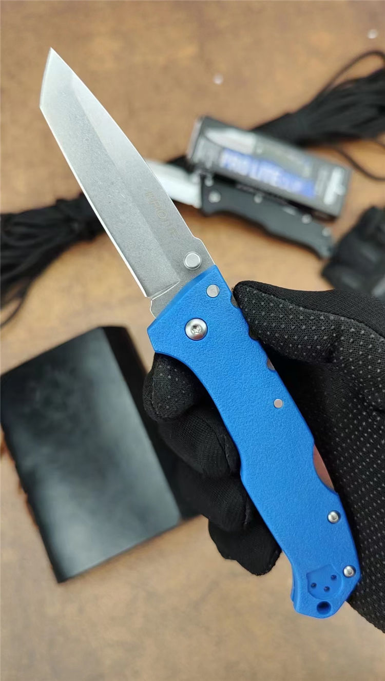 冷钢侦察兵4416折刀 全长:20cm 刃材:8CR13MOV 硬度:58-59HRC 刃厚:3.2mm 刃长:8cm 表面:精细石洗 柄长:115cm 柄材及处理:三维加工ABS尼龙玻璃纤维 重量:76g 重量:83g含包装盒 包装:彩盒包装 锁型:背锁