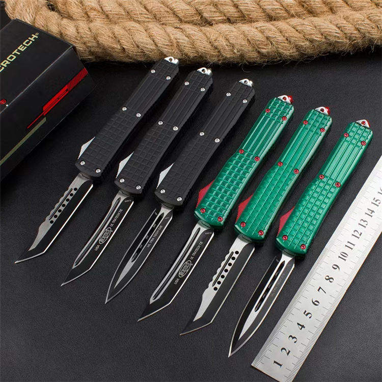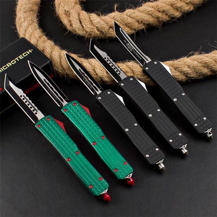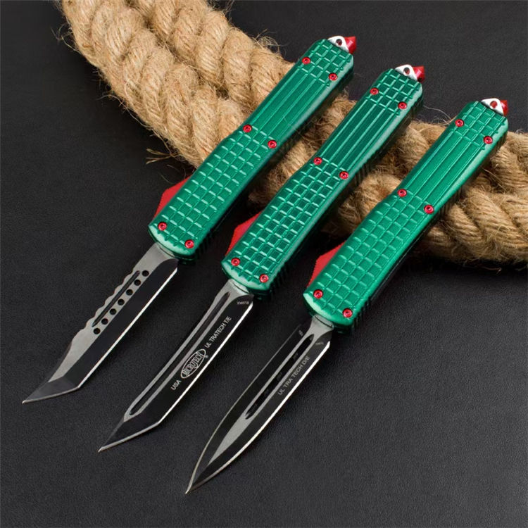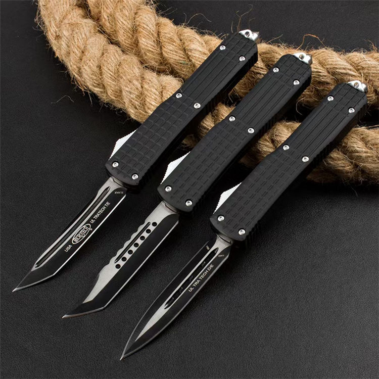 微技术新款海军直出跳刀 全长:21.6cm 刃长:8.5cm 柄长:13cm 刃宽:15mm 刃厚:2.5mm 刃材:5cr13 柄材:锌铝合金 硬度:58HRC 净重:161G 毛重:223G 其他:盒子
