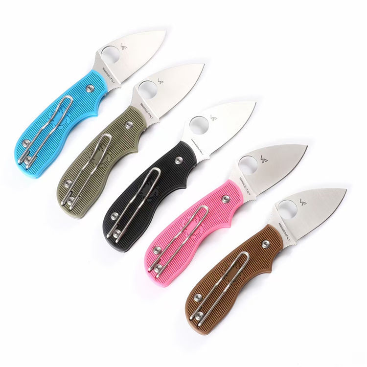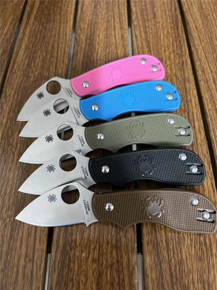 蜘蛛口袋小折刀 全长:12.8cm 刃长:4.6cm 柄长:7.8cm 刃宽:2.2cm 刃厚:0.2mm 刃材:N690 刀重:37g 重量:55g(含包装物) 硬度:58-60HRC 表面:沙光 柄材:玻璃纤维手柄 刀夹:钢背夹