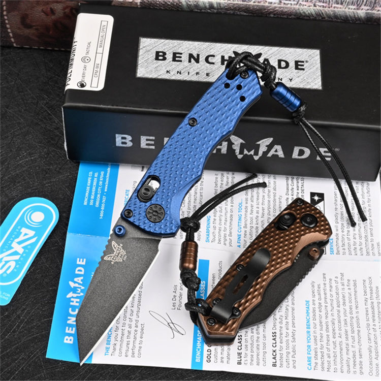蝴蝶290折刀 全长:15cm 刃长:6cm(开刃处) 柄长:8.8cm 刃厚:0.25cm 刃宽:2.3cm 刀重:74.8g 毛重:137.1g 钢材:M4钢 柄材:航空铝(数控雕刻) 硬度:59-60 HRC 磨刀:数控磨 开刃方式:二次开刃 热处理:真空淬油热处理 系统:滚珠轴承 表面处理:新工艺涂层(不掉色) 包装:原厂礼盒 其它:带绳子和航空铝吊坠 颜色分别是蓝色,棕色,绿色