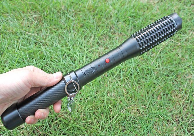 1、采用高硬度轻质版航空铝合金外壳设计 2、进口3W强光灯,照明亮度超过300流明,远射距离250米 3、采用进口18650电池,电池仓脱卸设计,电池可以取出充电,电池使用时间待机1个月 4、采用高压模块可瞬间 电压280万伏 5、国家安保部门定制,安全尺寸全长:32厘米,净重;400克,配有金属钥匙扣,袖带方便,是巡逻执勤必配物品 6、棍身头部狼牙部分为橡胶物,重击对人体无重大伤害,手柄握把采用橡胶物防滑设计,是理想的防身武器