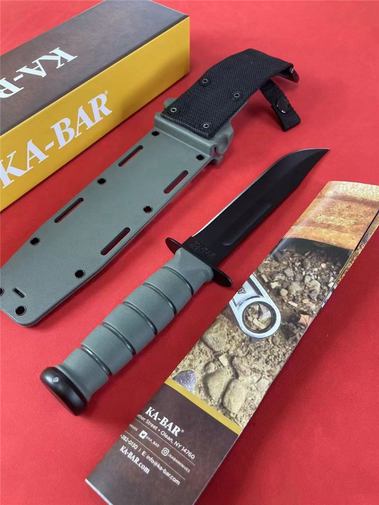 复刻版卡巴5011直刀 全长:30CM 刃长:17.5CM 柄长:12.5CM 刃厚:0.4CM 刃宽:3.2CM 刀重:309.6g/443.5g含鞘 毛重:630g含包装 刃材:1095 Cro Van 碳钢 表面:黑色环氧涂层 硬度:60-61HRC 柄材:Zytel 刀鞘:Kydex鞘 包装:高档彩盒