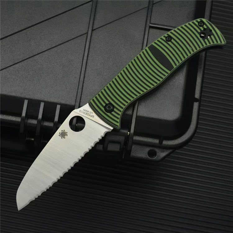 蜘蛛C217GP折刀 全长:21cm 刃长:9.5cm 柄长:11.5cm 刃宽:3cm 刃厚:3mm 刃材:9cr18mov 刀重:119g 硬度:58-59HRC 表面:砂光 柄材:双色G10 锁型:线锁 其他:配彩盒+说明书