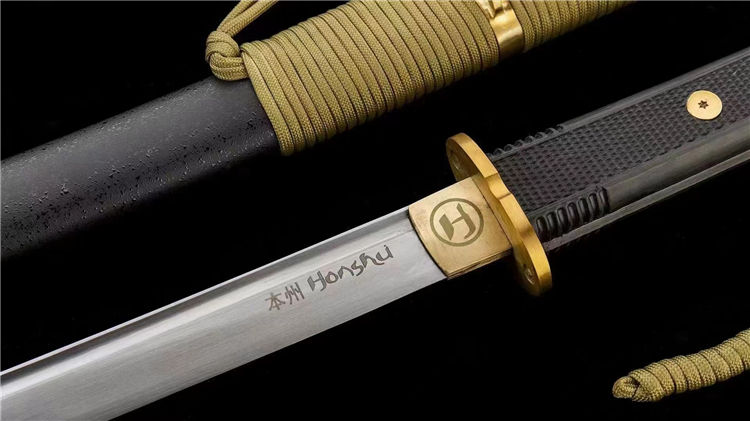 本州战术武士刀 全长:103cm 刃长:71cm 材质:1095进口钢锻造 手工拉丝,性能优越,柄为高强度ABS材质,柄绳为特种作战伞兵绳,纯铜刀盘刀夹