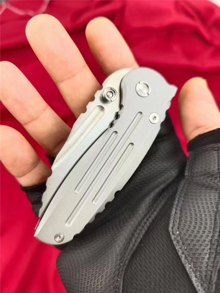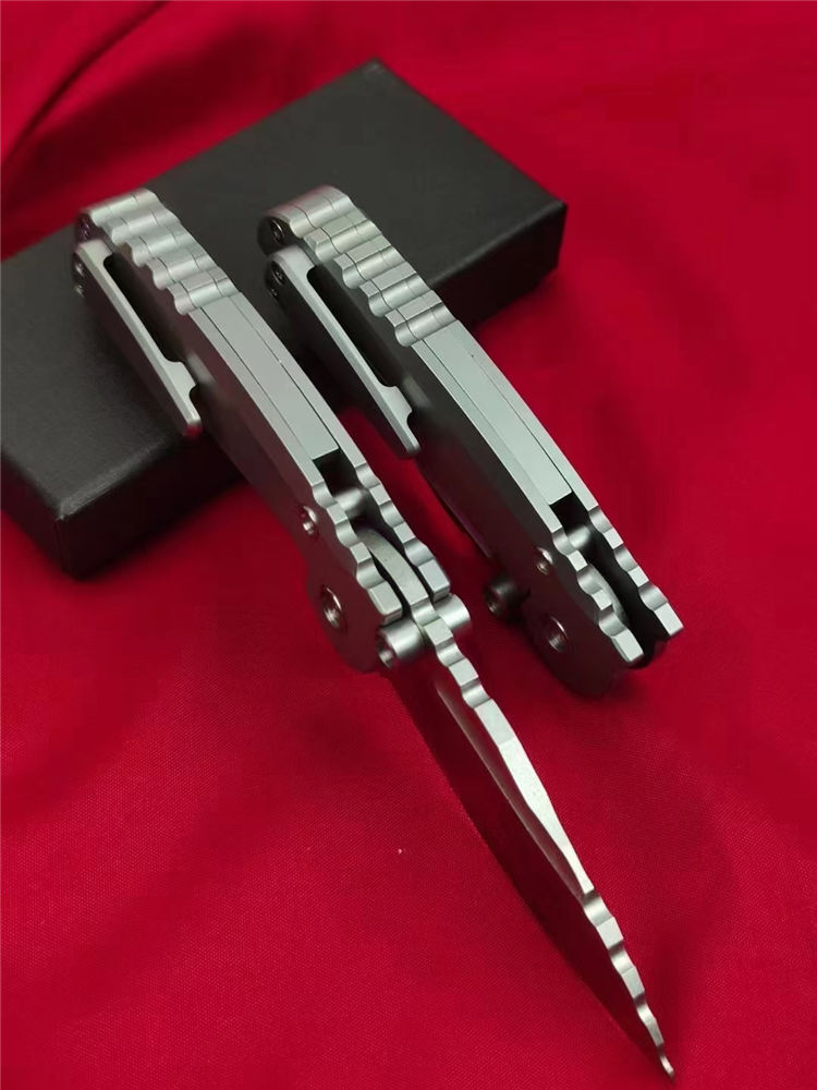 星际战舰折刀 全长:170mm 刃长:72mm 折合:98mm 刃宽:30mm最宽处 刃厚:3.5mm 刃材:进口AUS-8高端钢 刀重:172g 毛量:194g(含鞘包装盒) 硬度:59-61+HRC 表面:纳米陶瓷滚珠喷砂 柄材:全钢CNC精密加工雕刻沟槽+全钢龙骨 结构:双黄铜滚珠轴承 包装:黑礼盒
