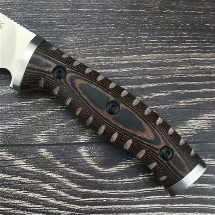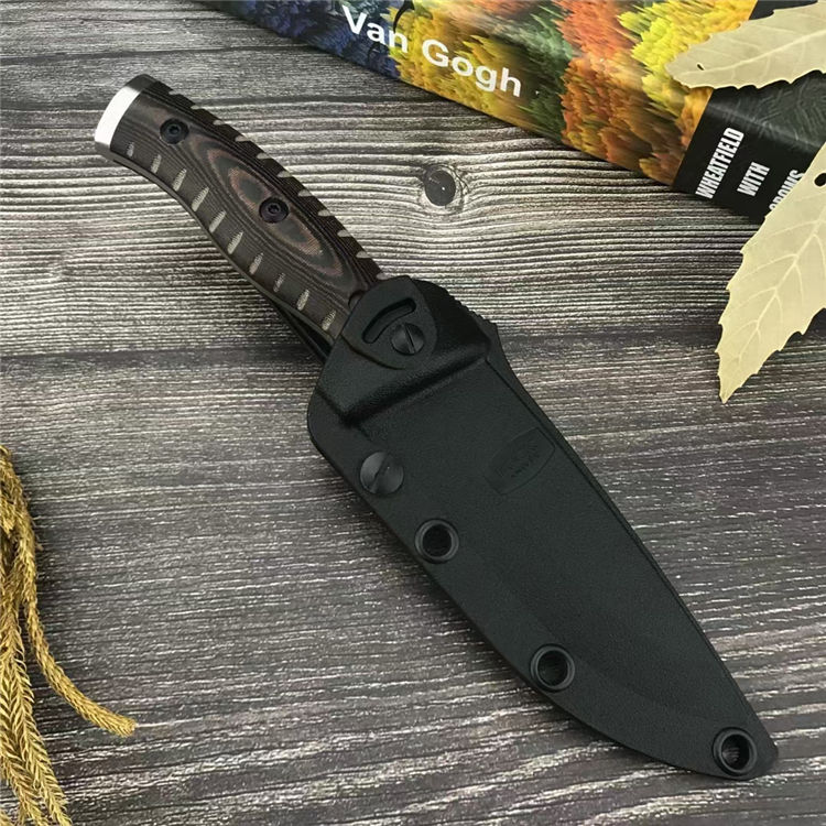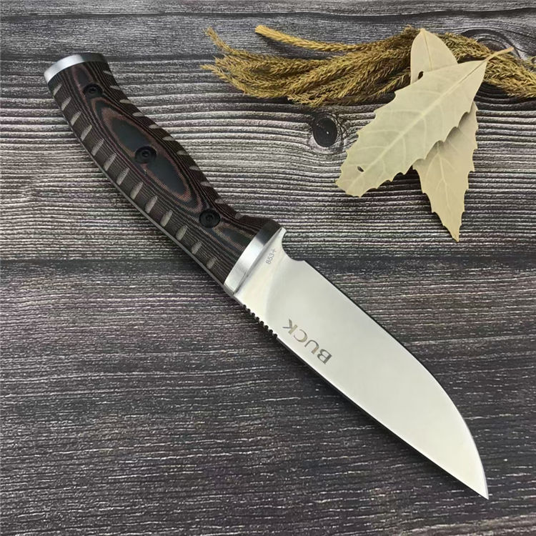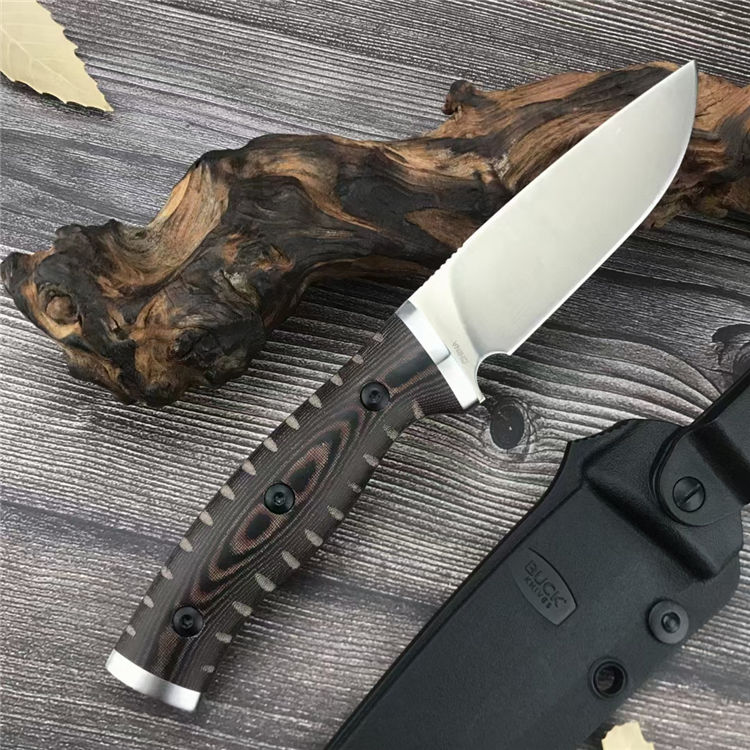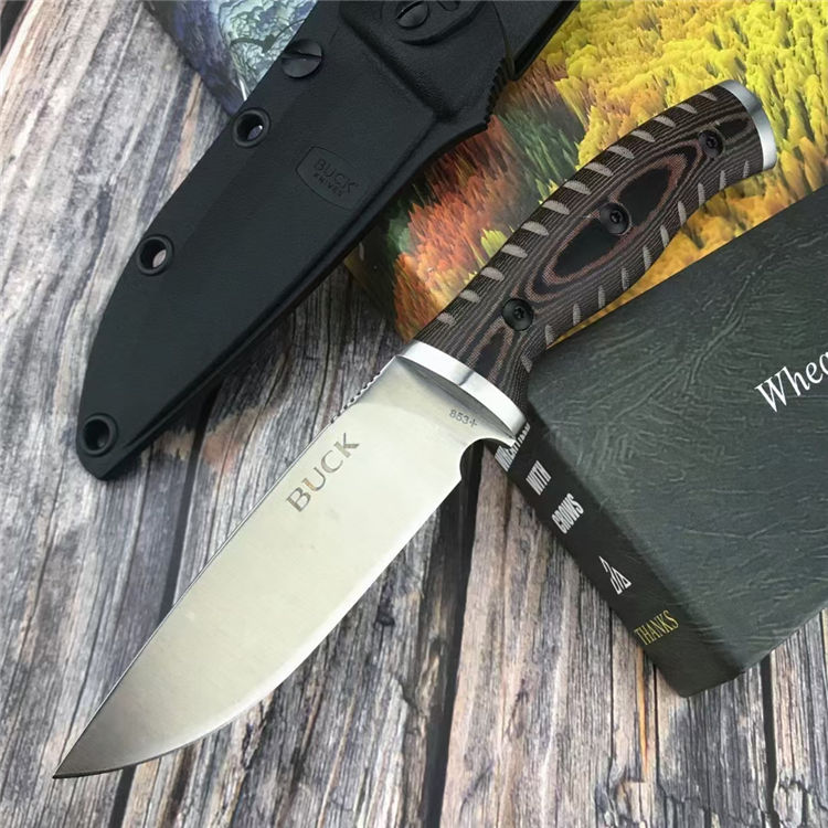 巴克853直刀 总长:20.8CM 刃长:9.9CM 刃宽:2.8CM 刃厚:2.9MM 柄材:G10 刃材:8Cr13Mov 柄长:10.9CM 柄宽:26.9MM 柄厚:19.6MM 重量:155G 刀鞘:Kydex鞘