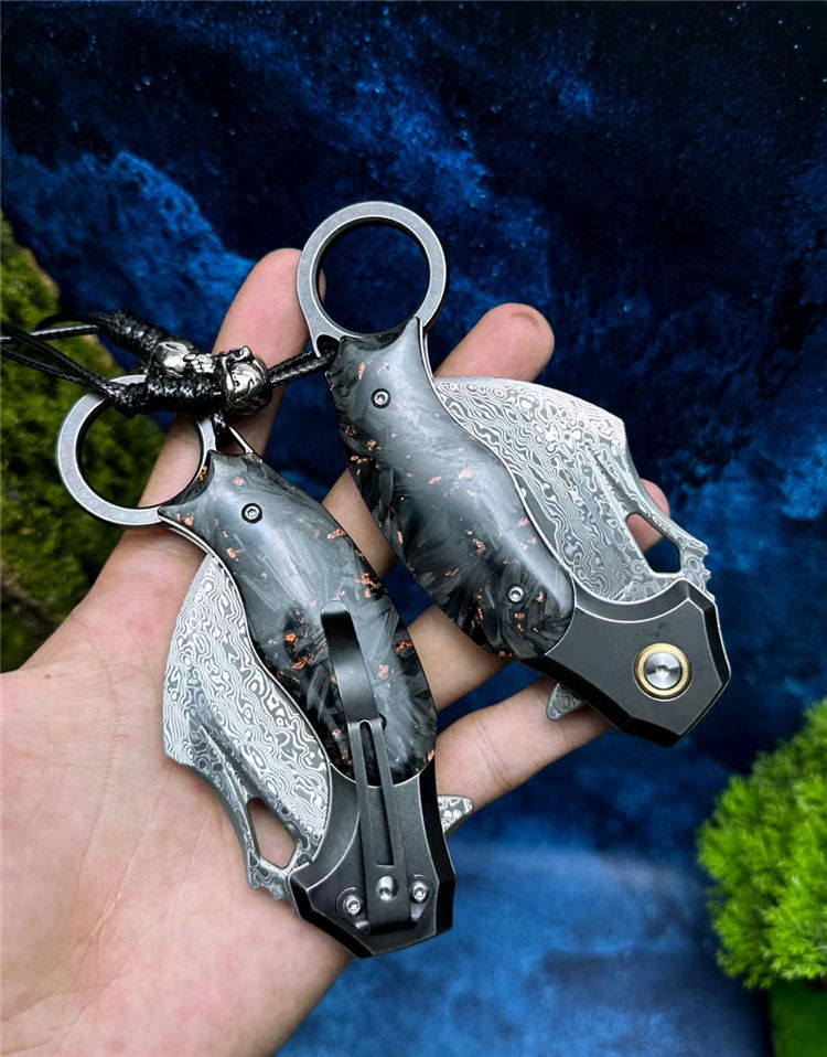 大马士革云鹰折叠爪刀