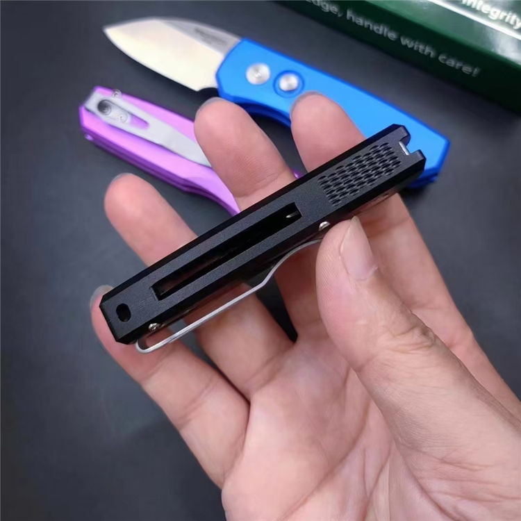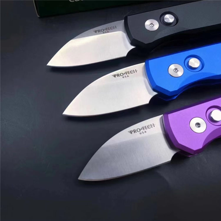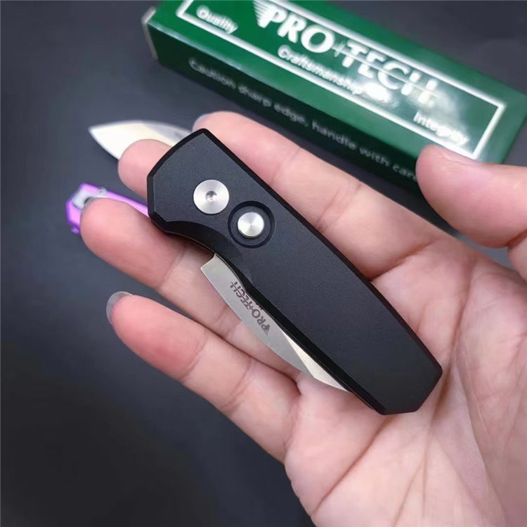 超技术Runt5侧开跳刀 全长:129mm 刃材:8cr13mov 表面:钢本精致抛光 硬度:60HRC 刃厚:3.0mm 柄长:81mm 柄材及处理:太空铝合金,CNC加工成型,表面氧化三种颜色 重量:60g彩盒包装,带背夹